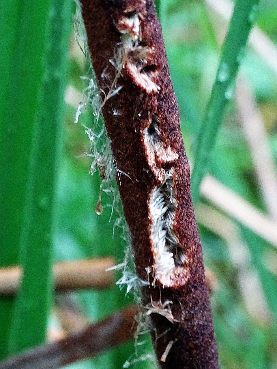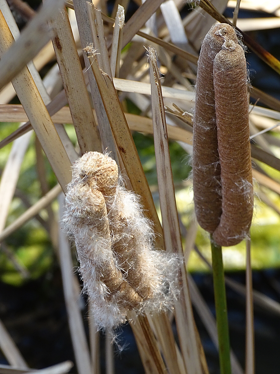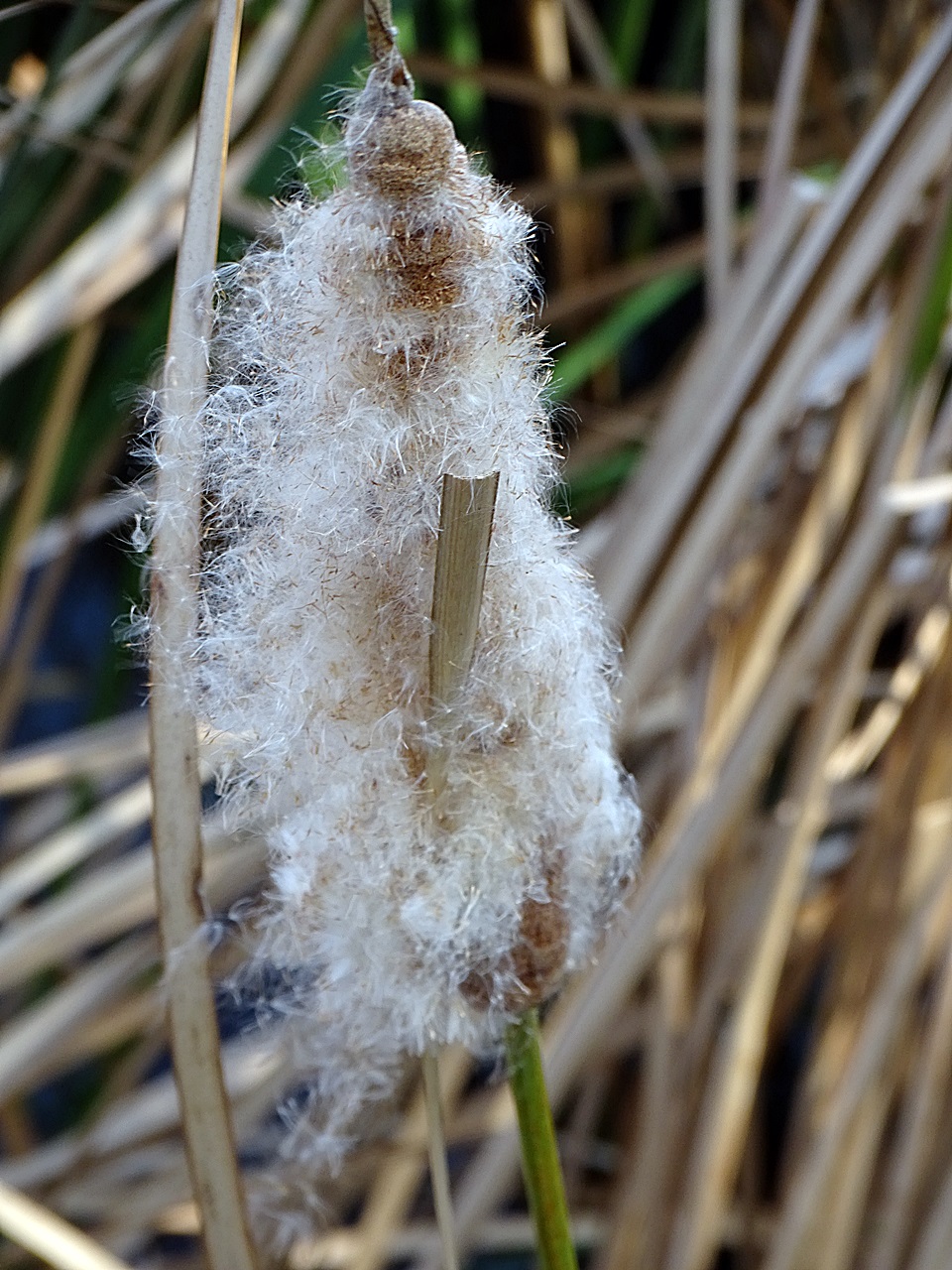 香蒲種子極為細小,具有毛絮,可靠風力和水力傳播。 |