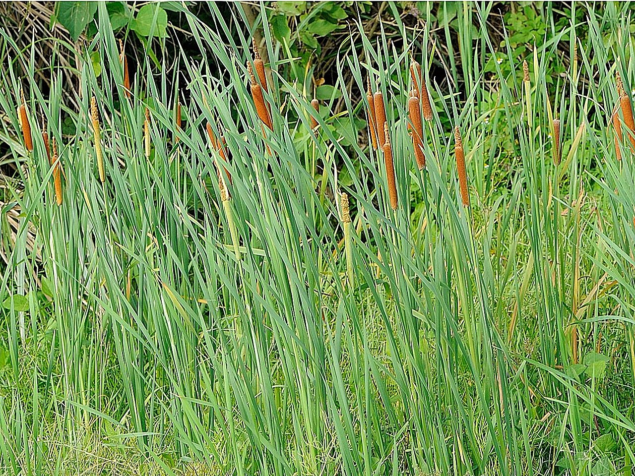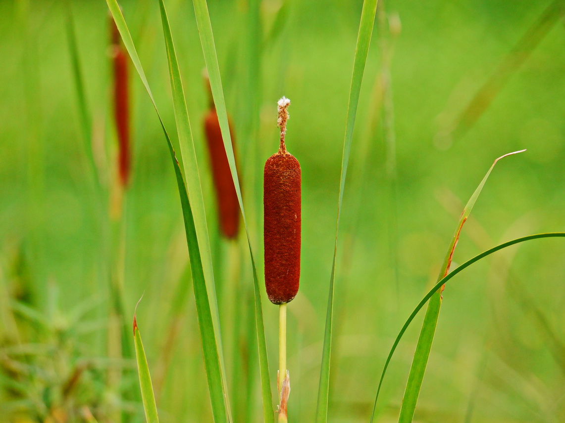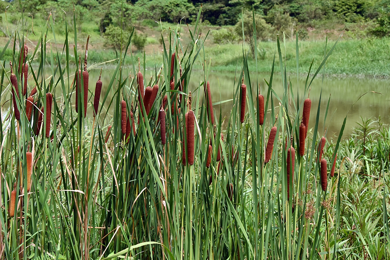 香蒲是台灣原生植物,多年生挺水的草本植物,常見於沼澤濕地、荒廢水田、水邊。地下莖匍匐泥中。造型獨特,長在溼地像一根一根蠟燭,造型非常特別。地上莖圓柱形直立,高 70~150 公分。葉2列,基生且莖生,直立,線形。香蒲的地下根莖發達,常萌生不定芽向周圍生長;強勢的地下莖,很容易長成一大遍,成為水鳥築巢與躲藏的好地方。