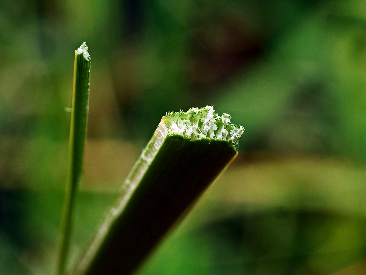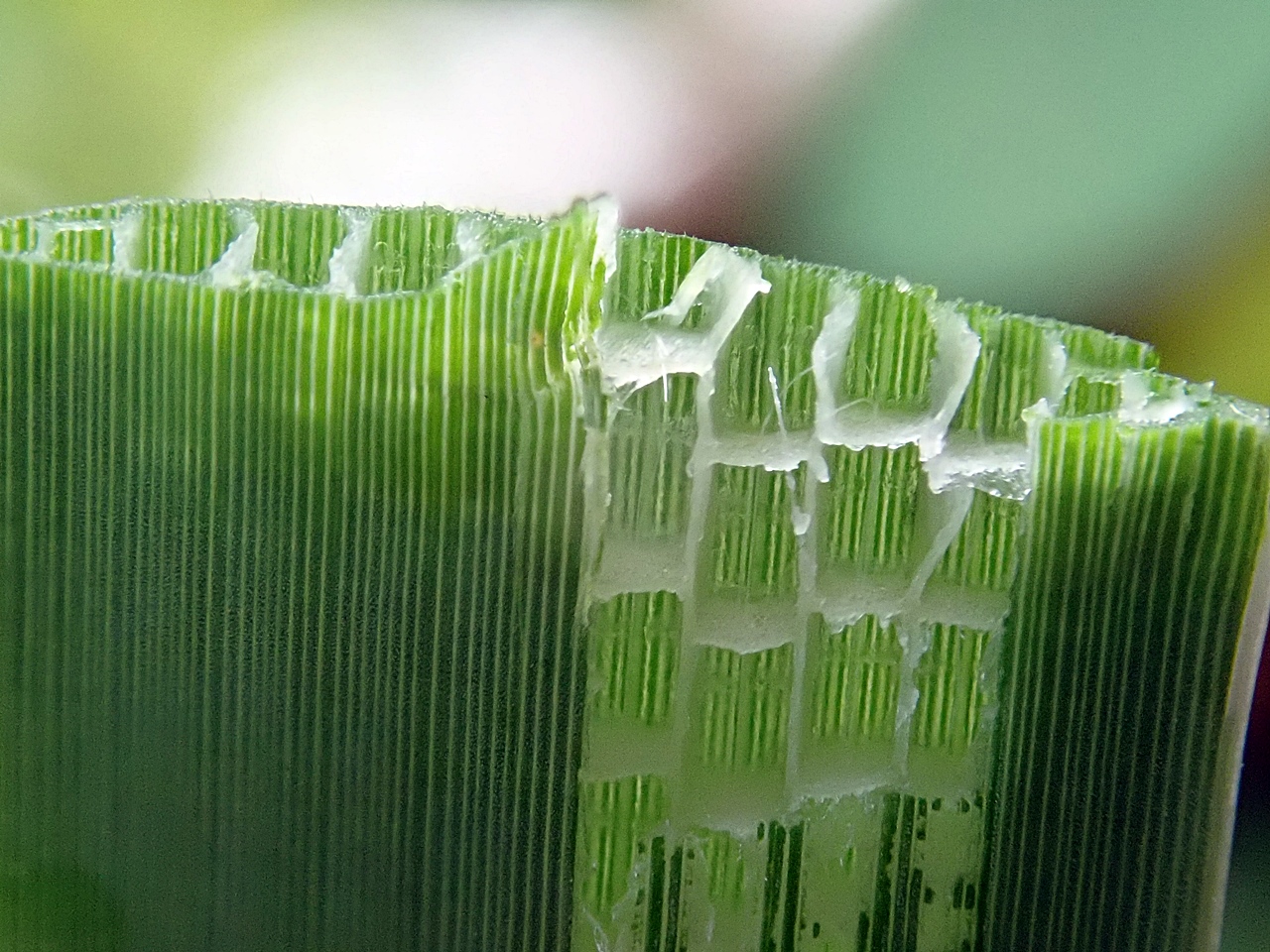 基部葉鞘緊緊包裹著莖,形成鞘狀結構,藉以支撐植物。 |