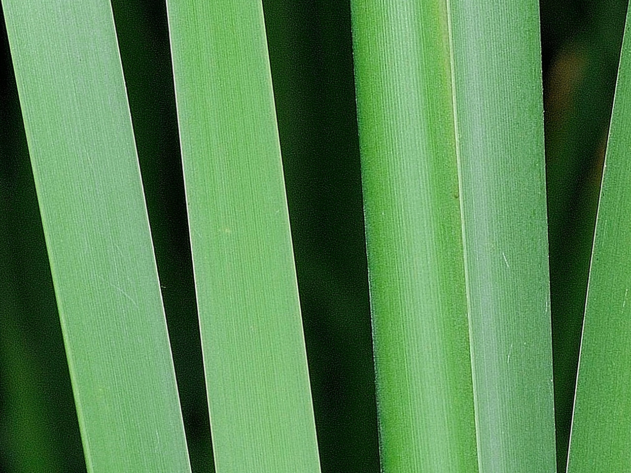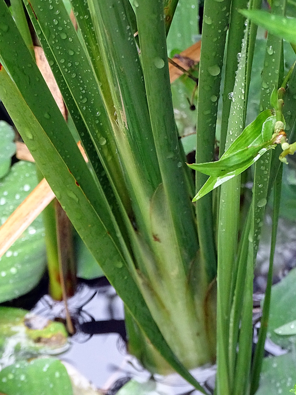 香蒲的葉:自基部為膜形葉鞘,莖生葉僅有葉鞘且無葉片。 |