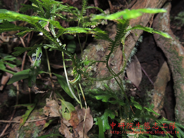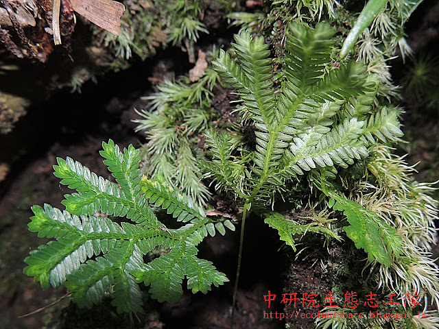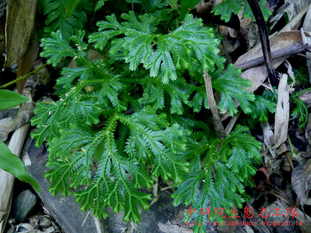 生根卷柏-葉下表面的枝軸分枝處常著生根支體(不定根)-支撐匍匐狀的莖葉 |