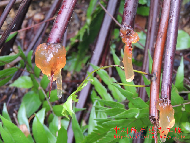 鬼沙欏葉柄折斷後流出的汁液 |