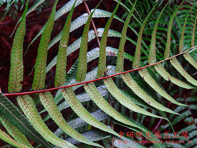 鬼桫欏孢子囊群生於脈上,每脈一枚 |