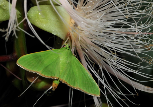 綠翅褐緣野螟蛾吸食穗花棋盤腳花蜜  (陳宗憲攝)