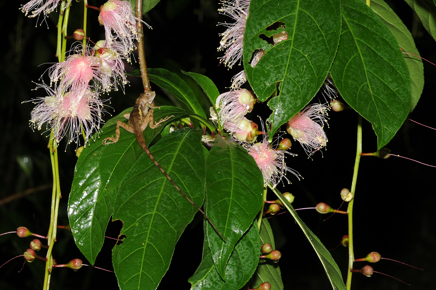 攀木蜥蜴也等著吃天蛾肉 ? (陳宗憲攝)