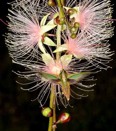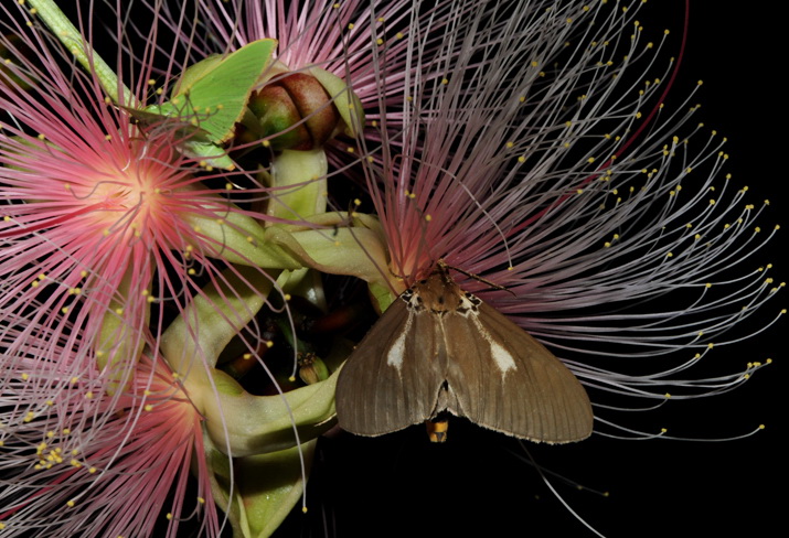 斜綠天蛾在穗花棋盤腳花上(陳宗憲攝)