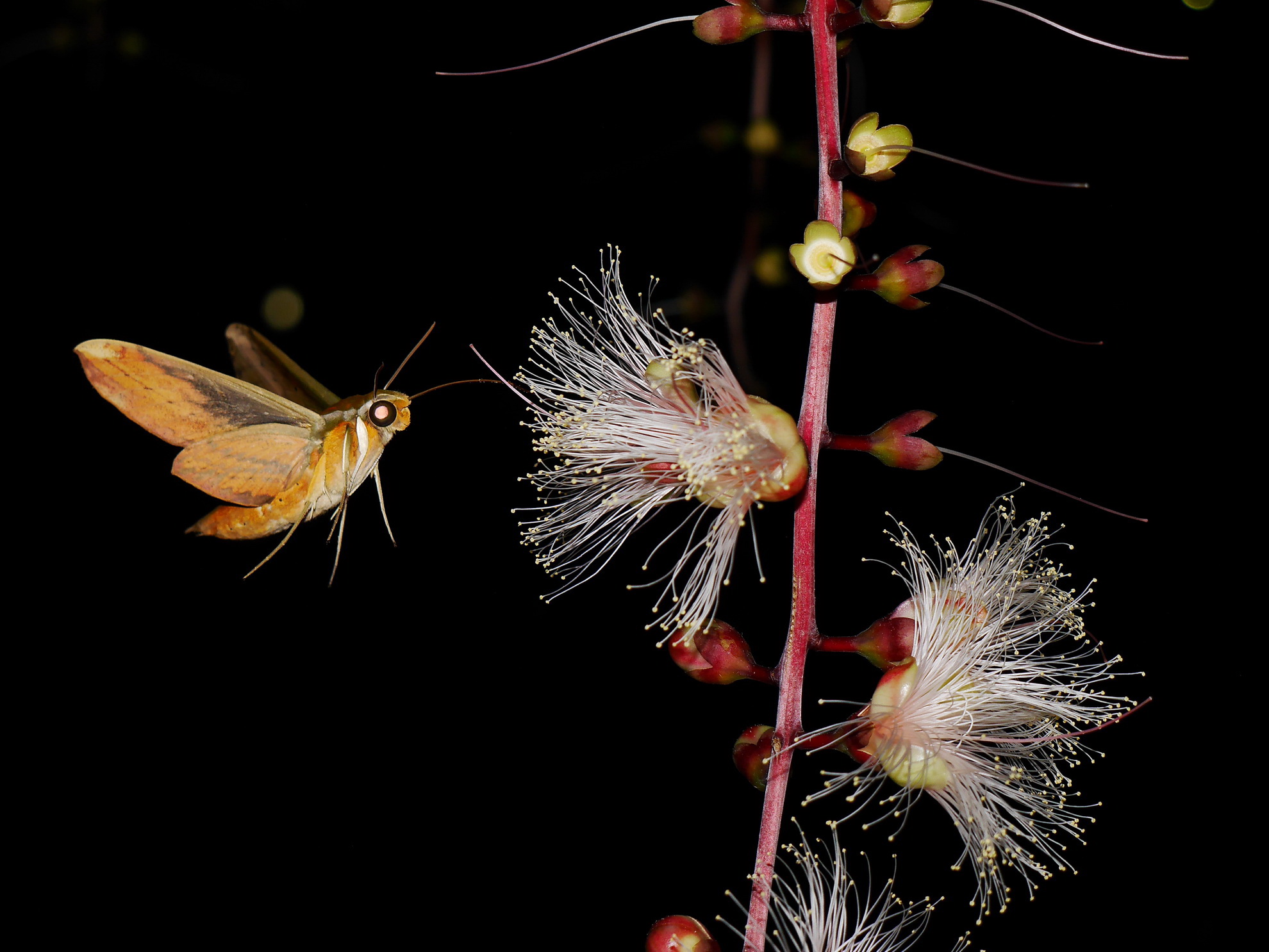 天蛾吸食穗花棋盤腳花蜜(蔡德輝攝)