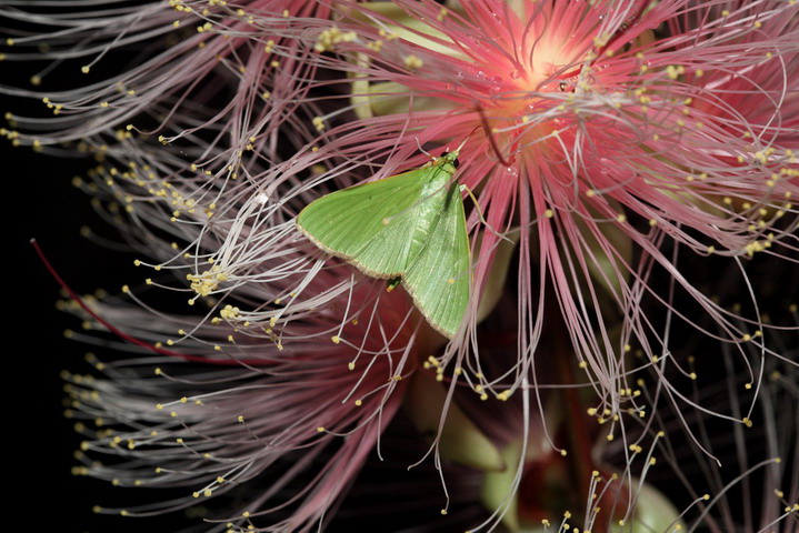 綠翅褐緣野螟蛾吸食花蜜中(林有義攝)