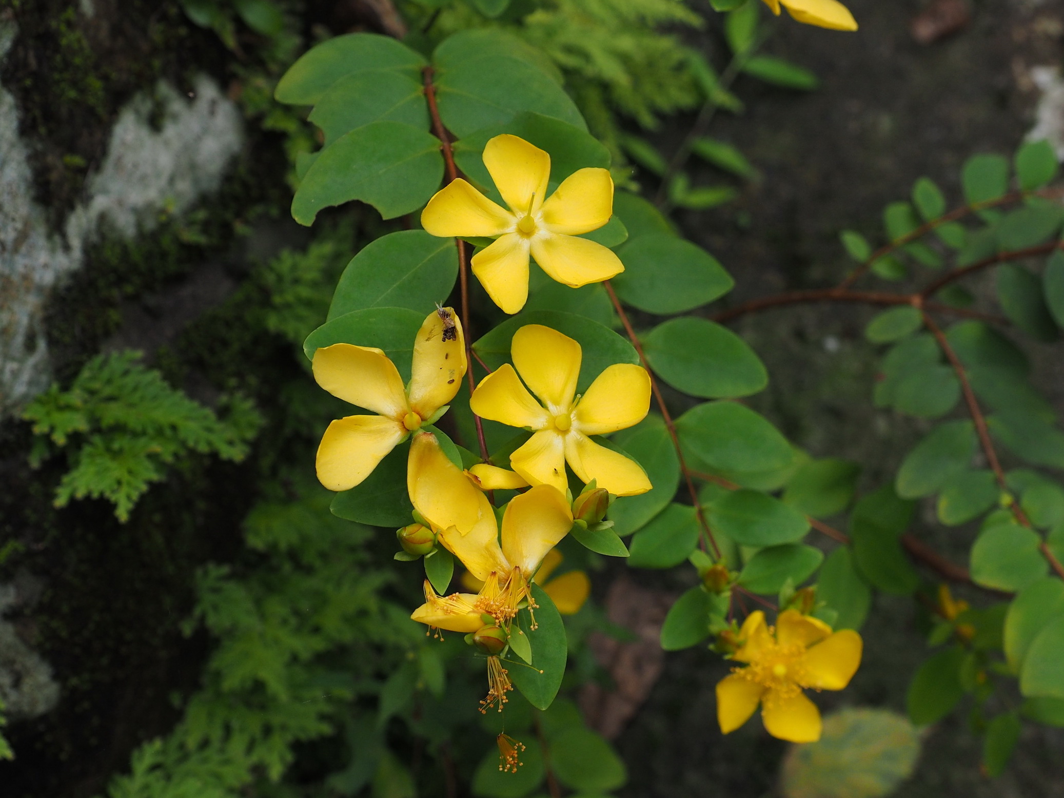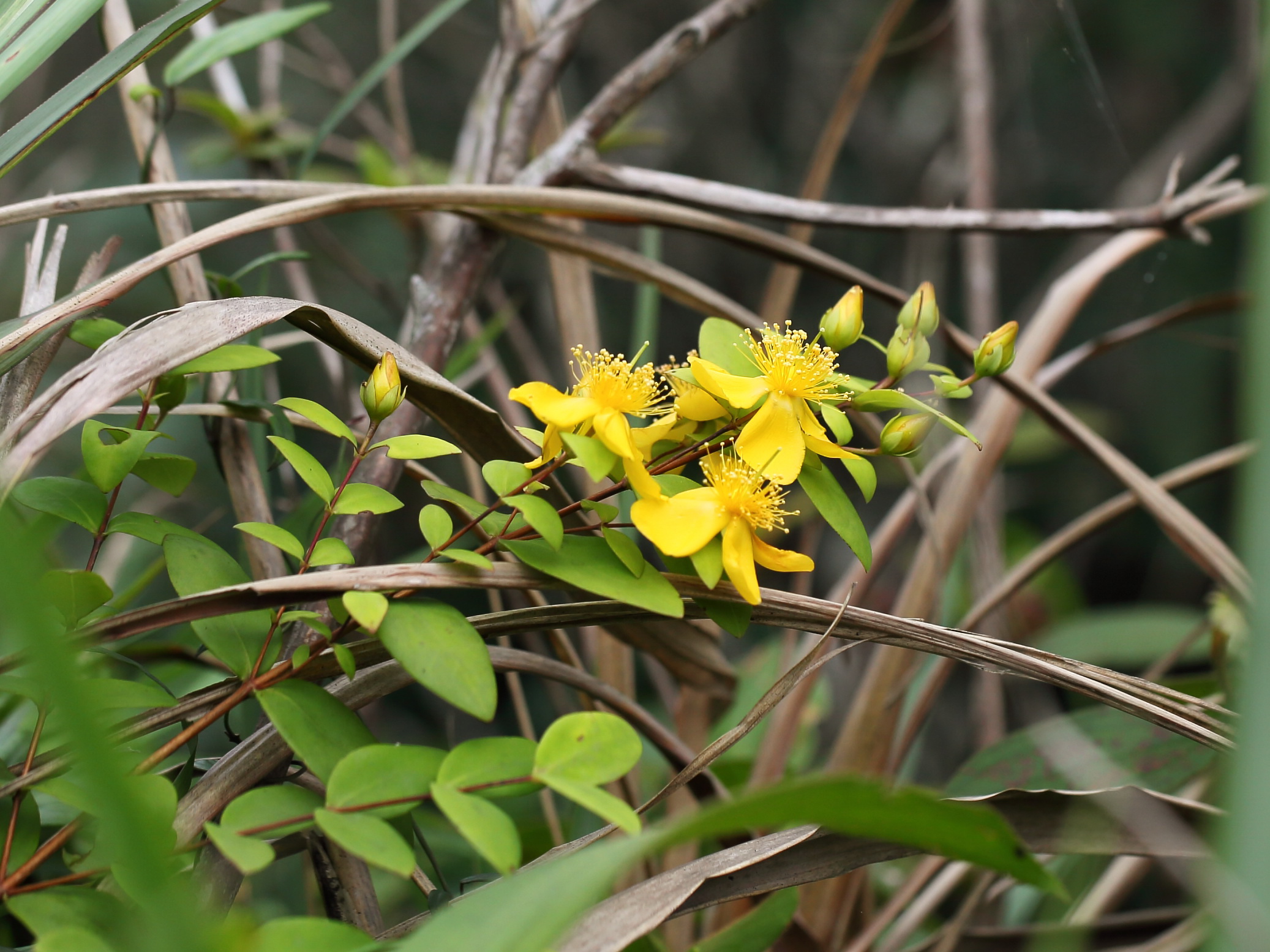 花1-3朵頂生或腋生,雄蕊多數,宿存花萼5,金黃色花瓣5,子房5室,花柱合生成單一,花期5-6月,花開在枝條前端6個節上。