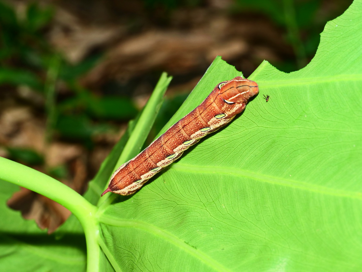 姑婆芋與斜綠天蛾幼蟲 |