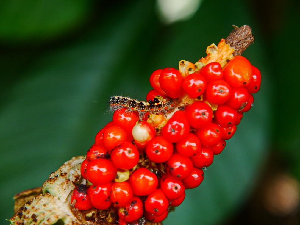 姑婆芋果實與台灣黃毒蛾幼蟲 |
