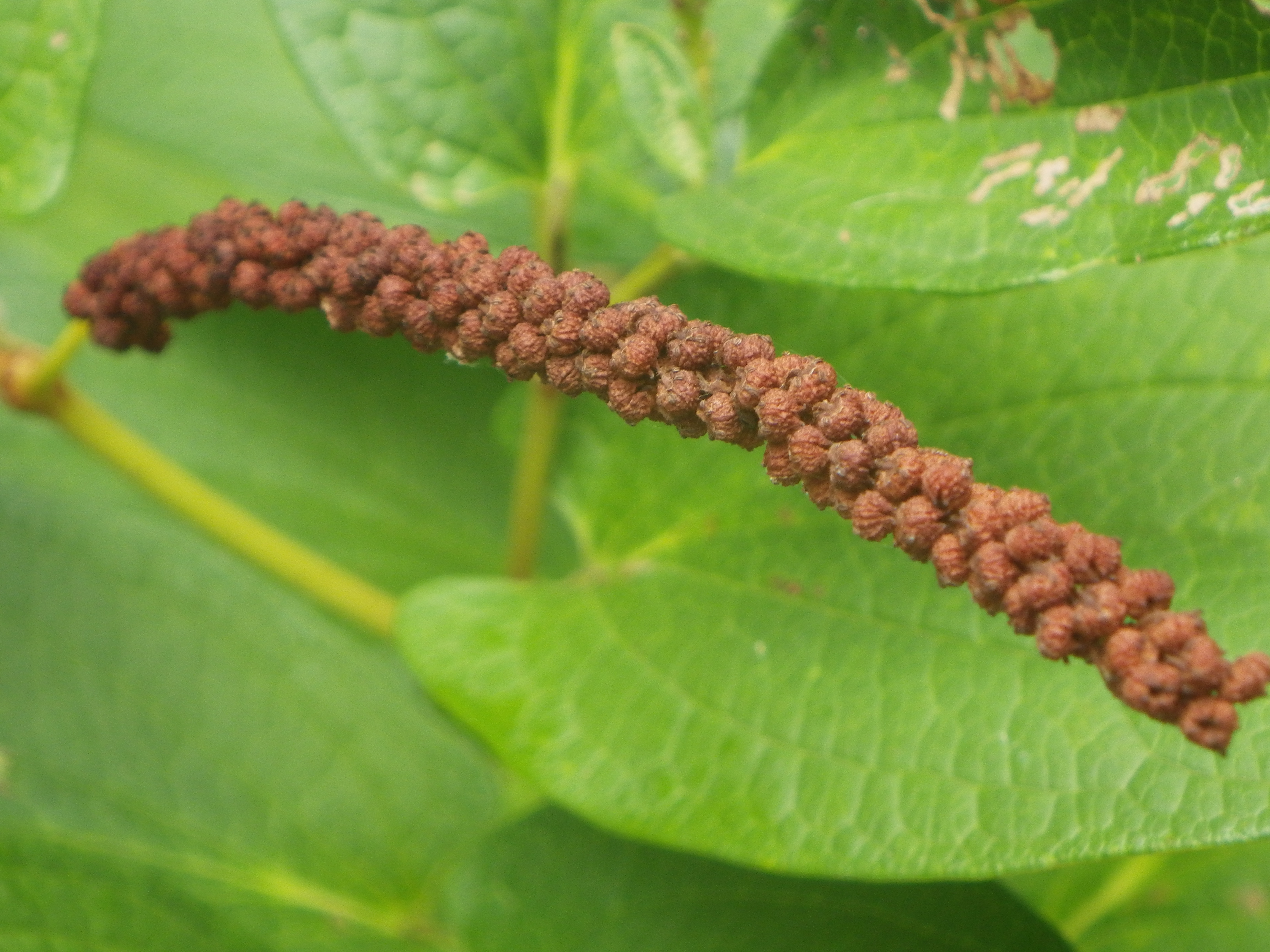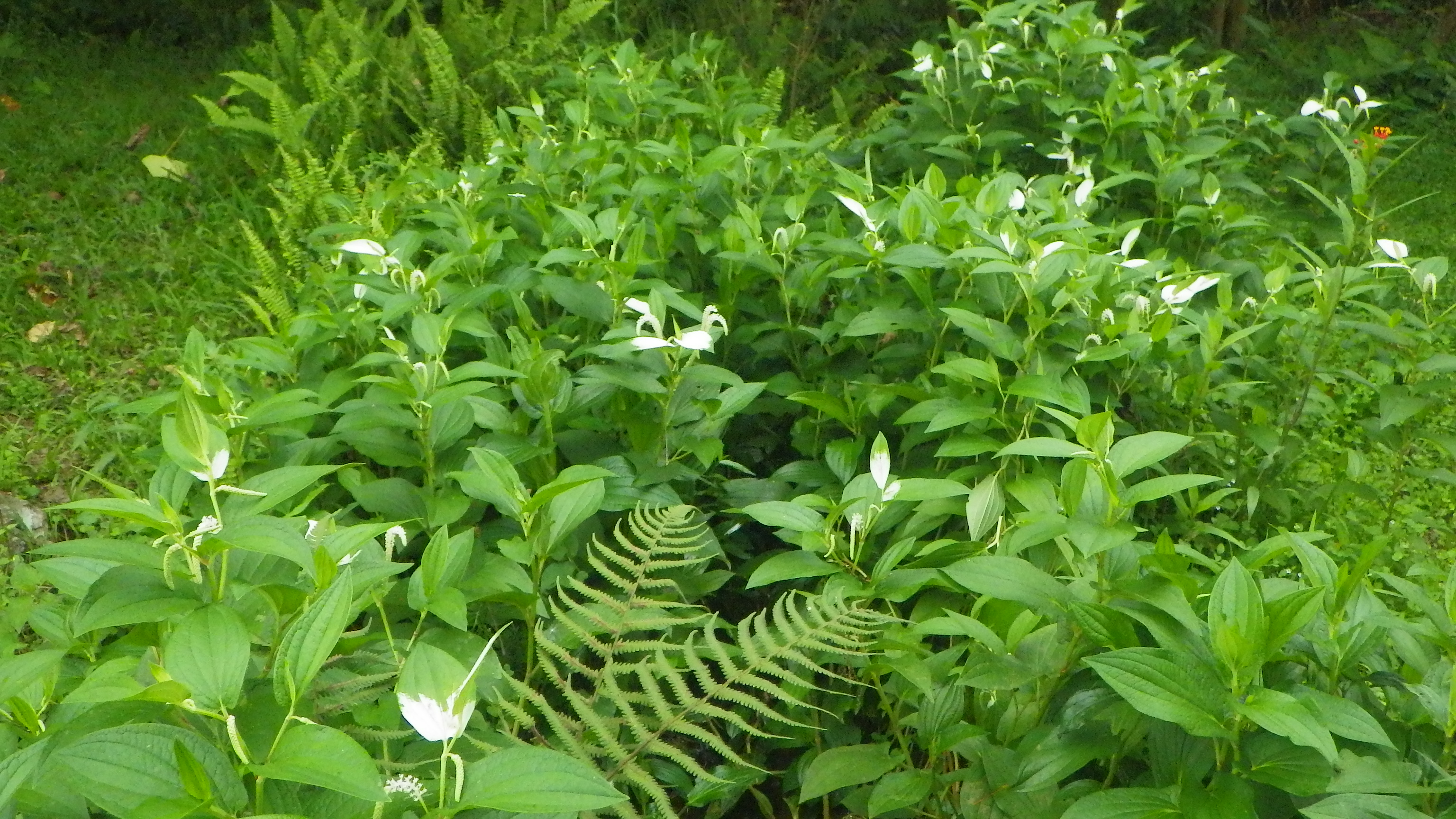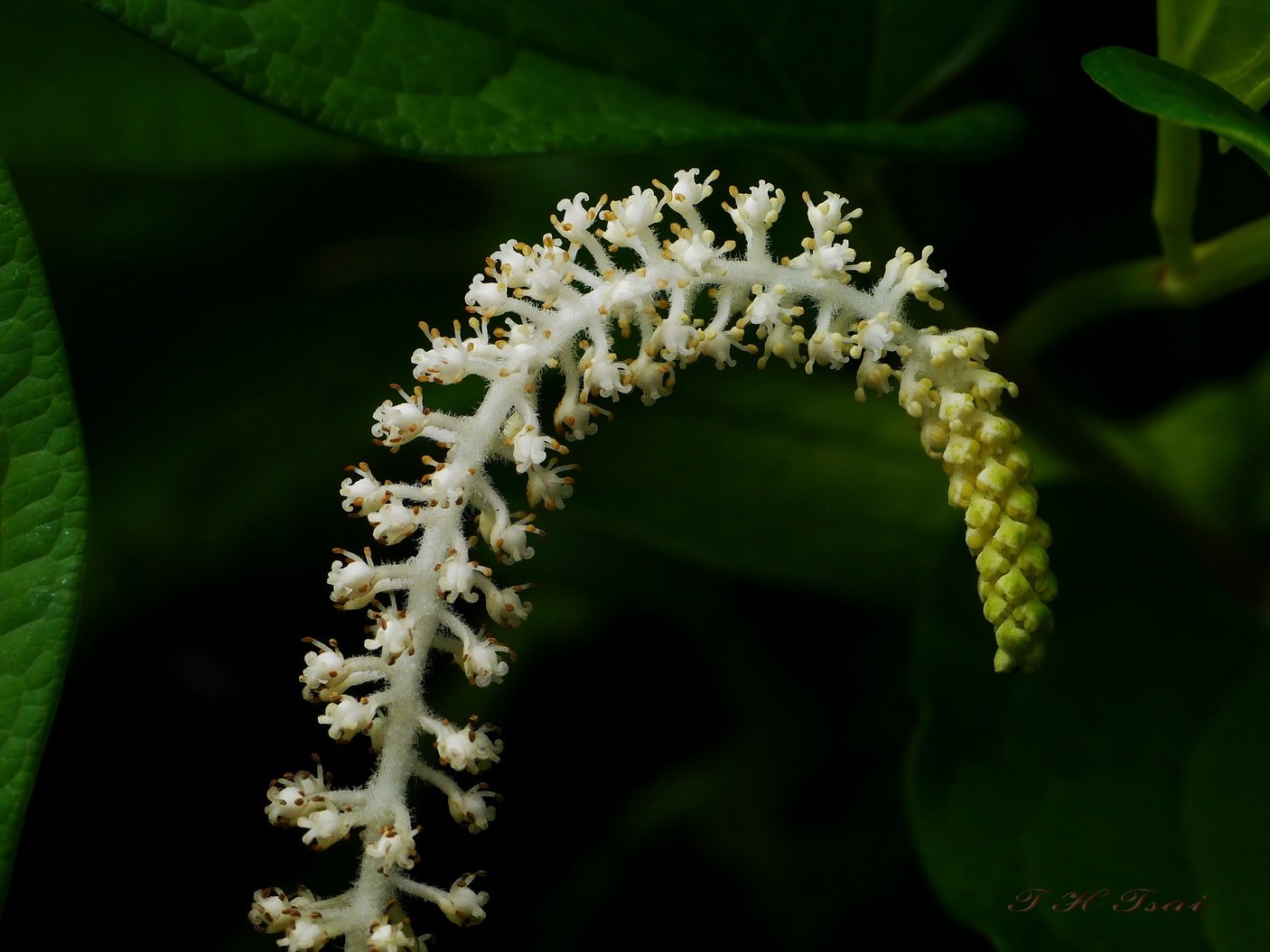 夏季以後會漸漸變成淡綠色。花穗抽出後呈下垂狀,但是當位於花序下方的花開始逐漸開放時,花穗會從原先下垂狀變成直立性,這是三白草的特徵之一。