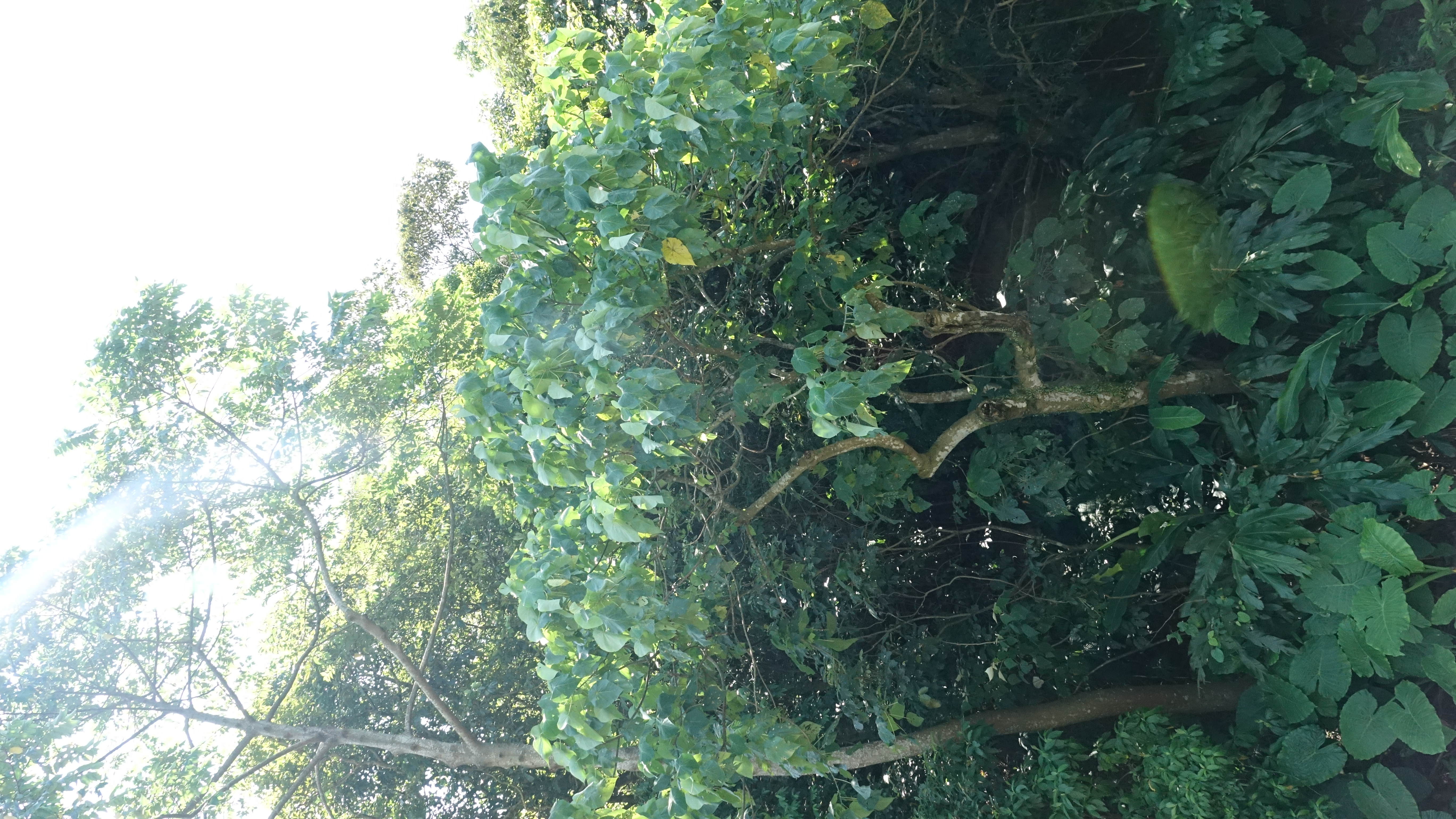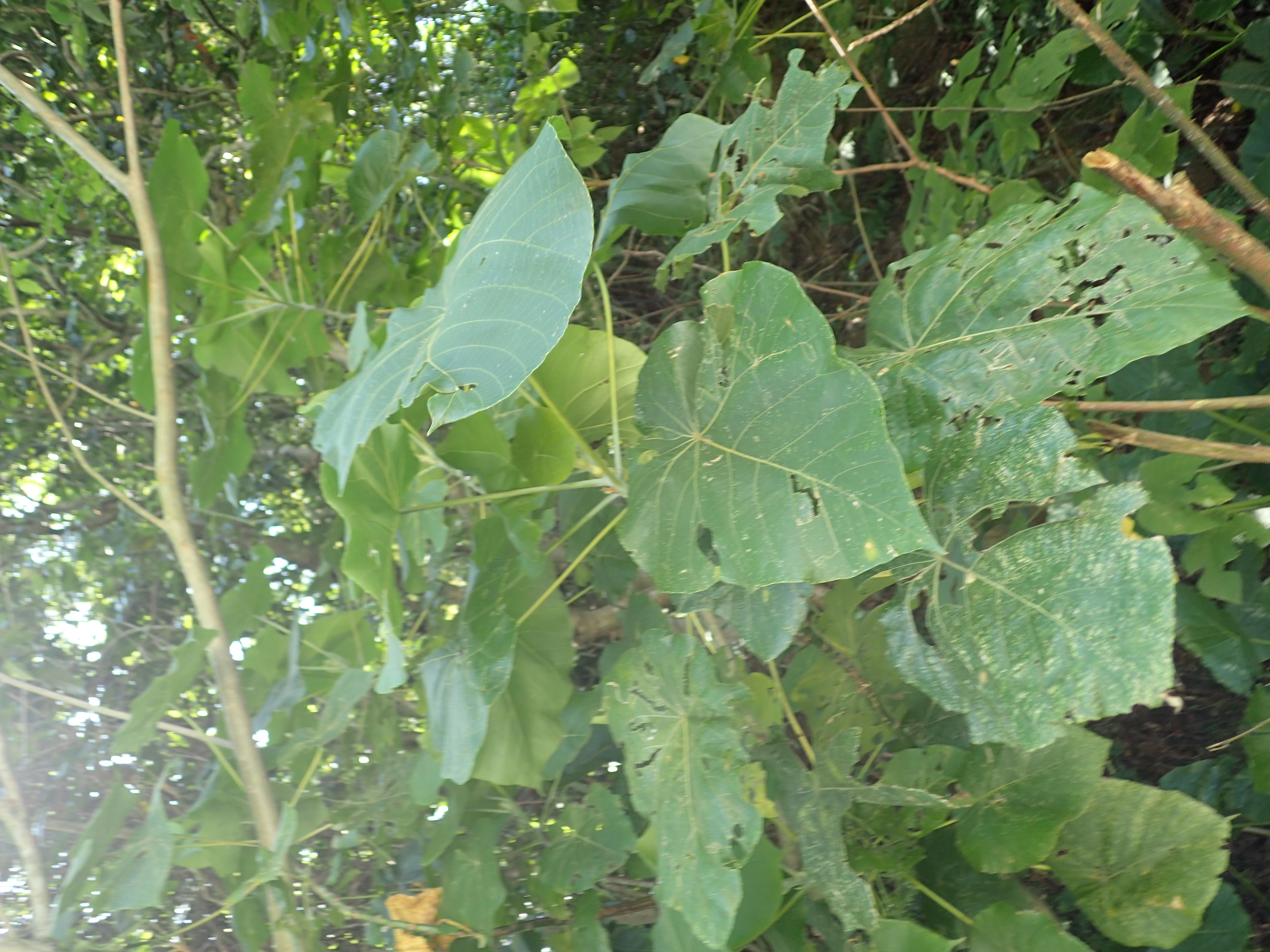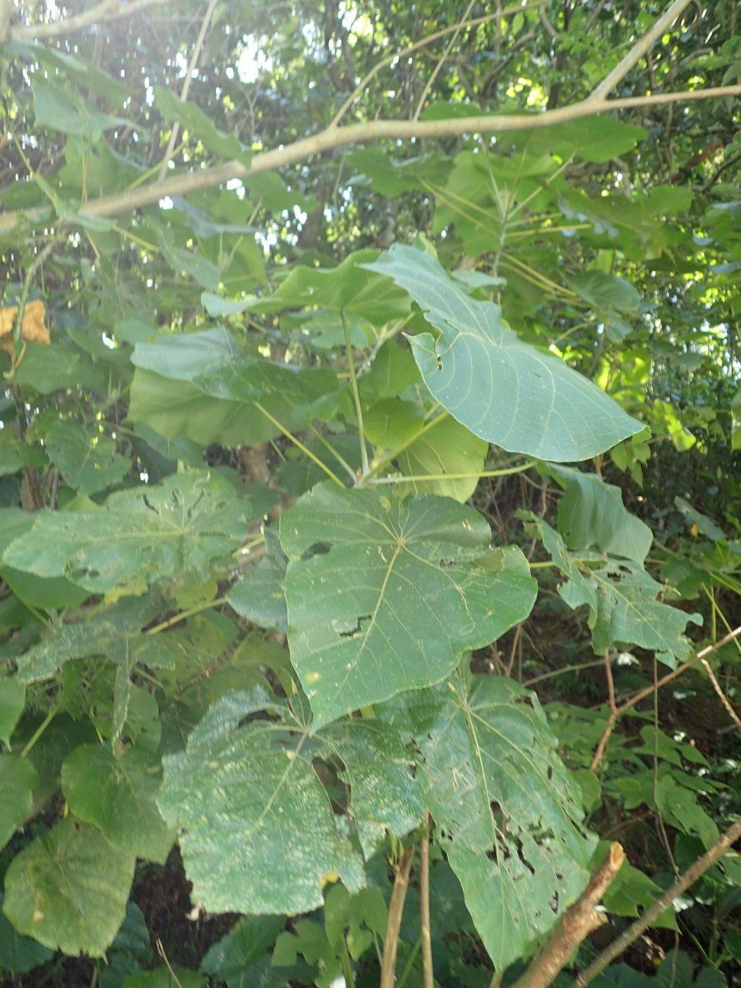 血桐為吸收大量的陽光,葉片拼命往上長,遠看如同一把大傘,提供鳥兒和動物良好的遮蔭,也可用於遮蔭樹或美化庭園栽培。葉片像盾牌,直徑可達30公分,仔細看又很像大象的耳朵,因此它的英文名為Elephant's Ear「象耳」。採片葉子,握住葉柄就好像撐著一把小傘。