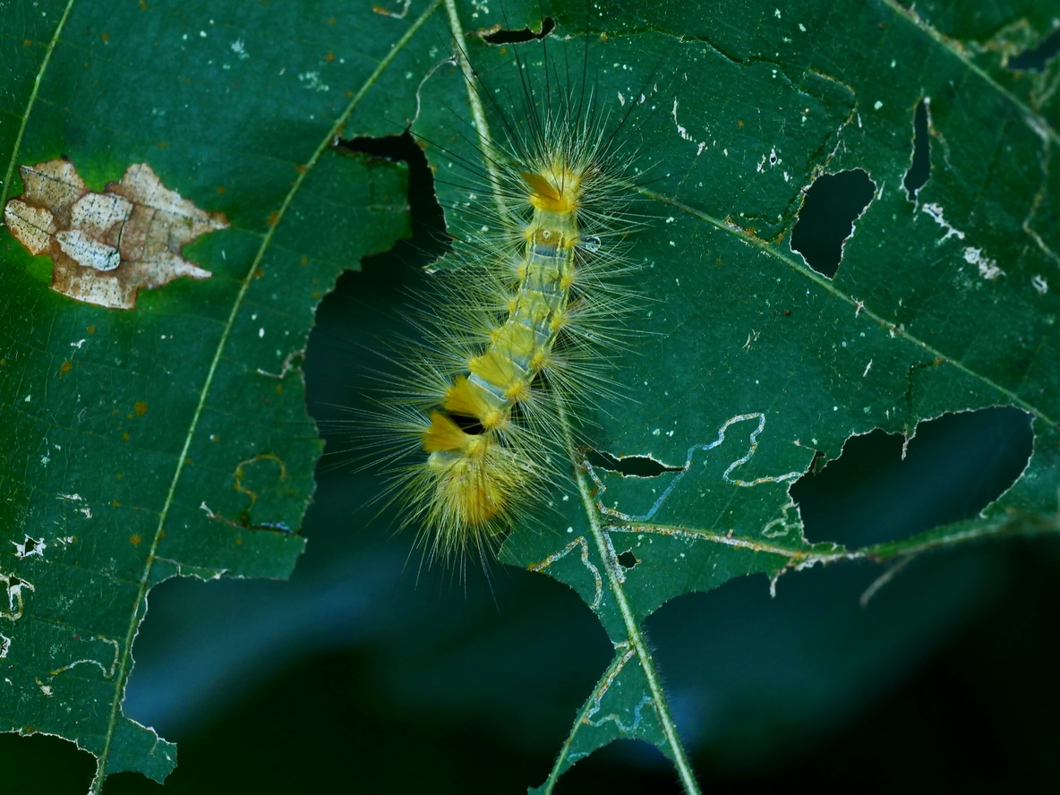 線茸毒蛾攝食血桐葉 (蔡德輝 攝)