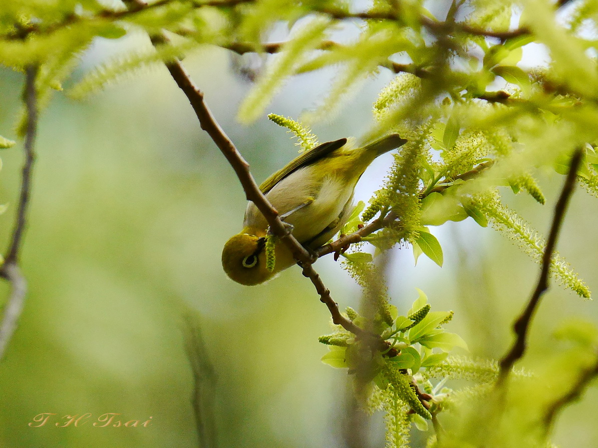 綠繡眼舔水柳蜜 (蔡德輝攝) |