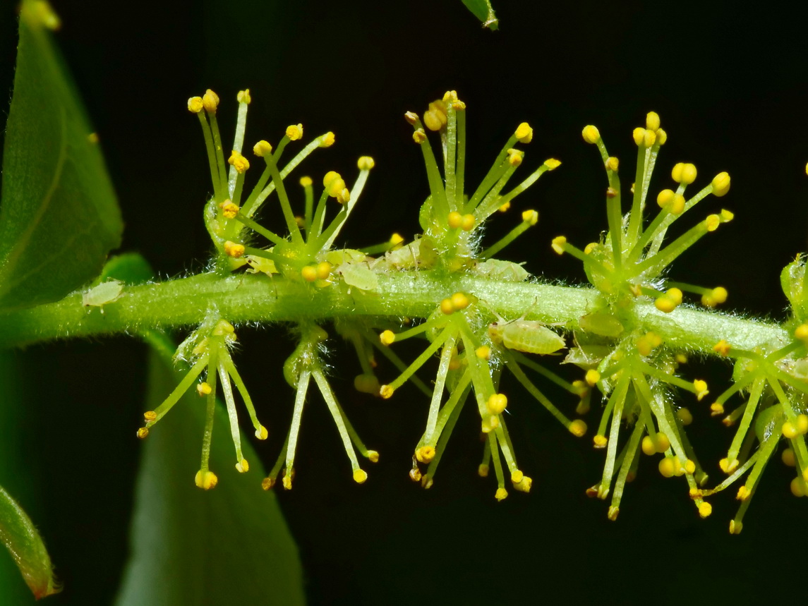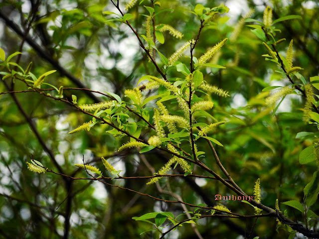 水柳雄花,花偏淡綠色,開花時,同時也有綠葉 (陳宗憲攝) |