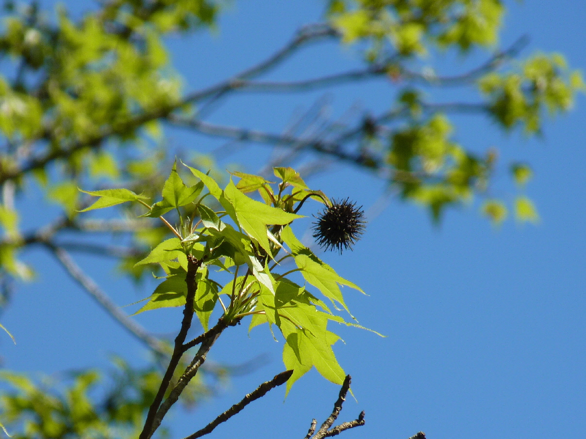 楓香:蕈樹科 楓香屬(Liquidambar),葉互生、球形聚合果。