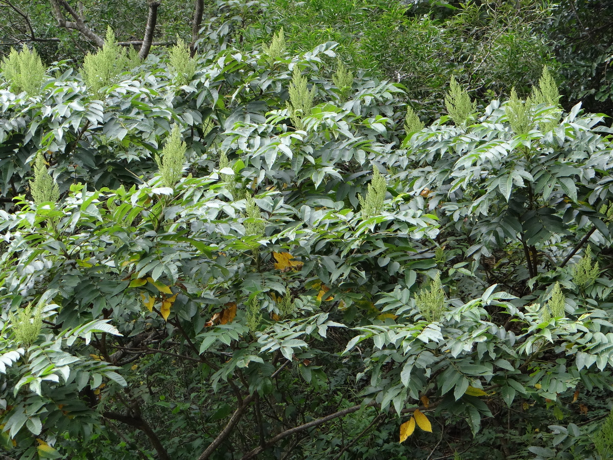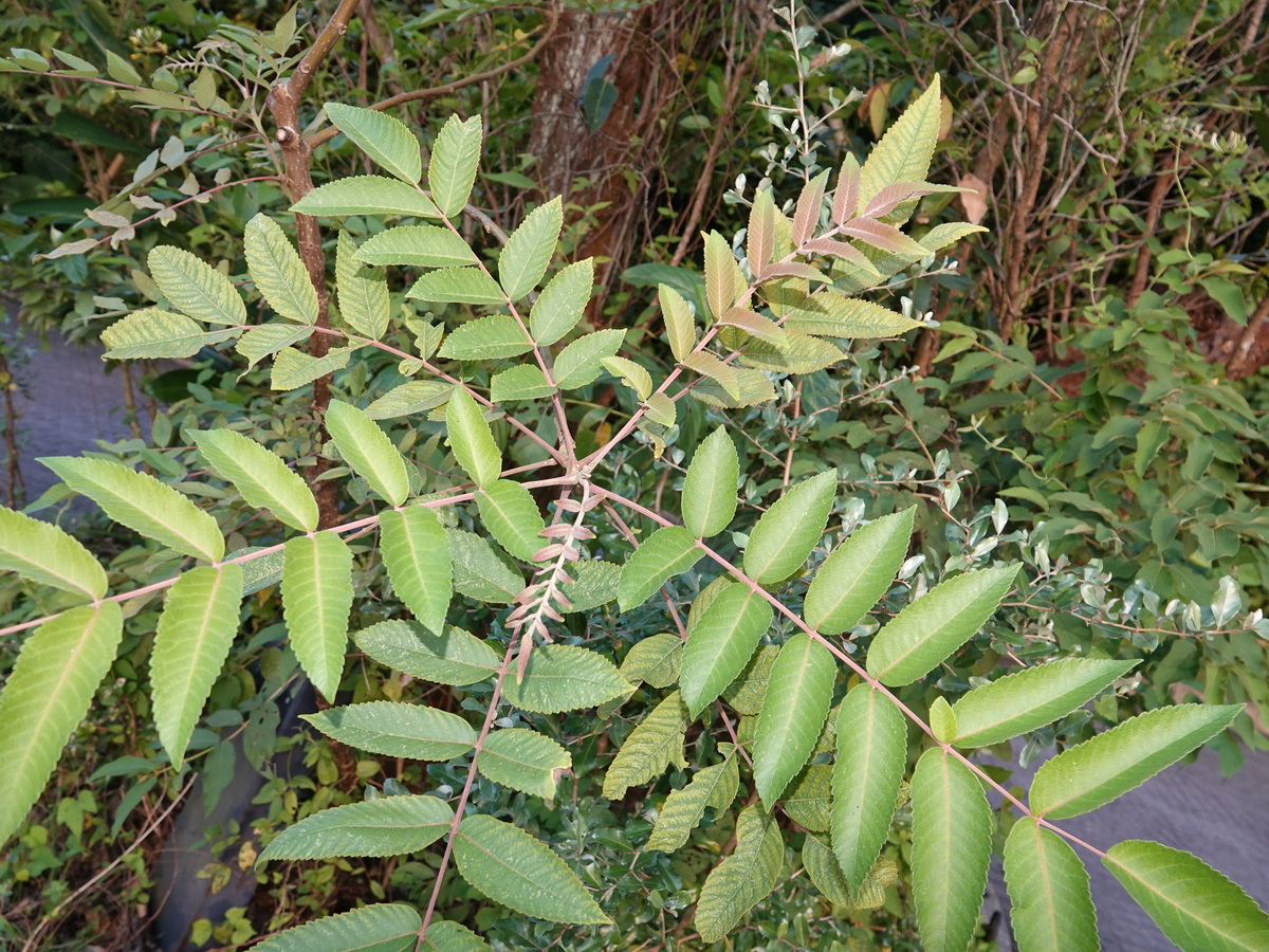 分布於低中海拔向陽開闊地,是全島各地常見的台灣原生種。為落葉小喬木,株高約數公尺,全株被有褐色柔毛。多分枝,小枝直立或斜上,小枝被有褐色柔毛。葉互生。奇數羽狀複葉,小葉9~17,側小葉對生,卵狀披針形,紙質,鋸齒緣,背面密生褐色毛茸。幼嫩枝葉為紅色。。