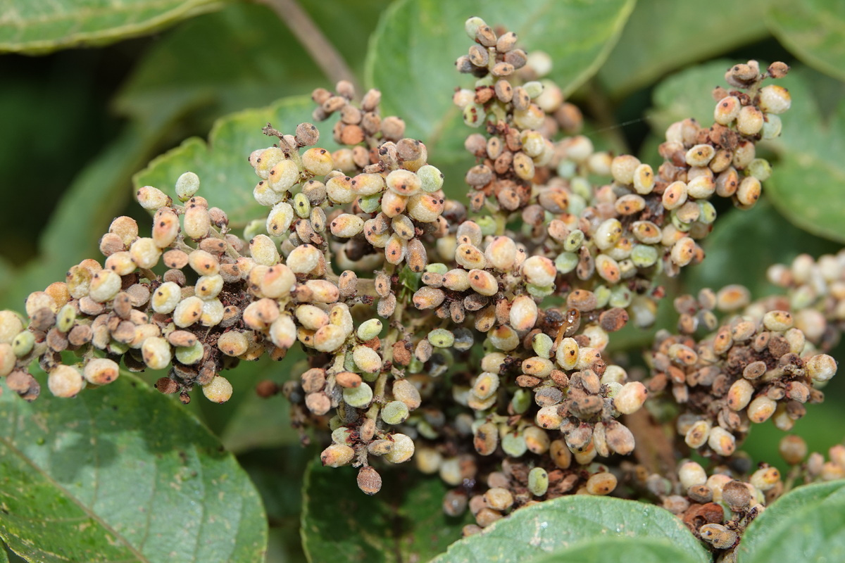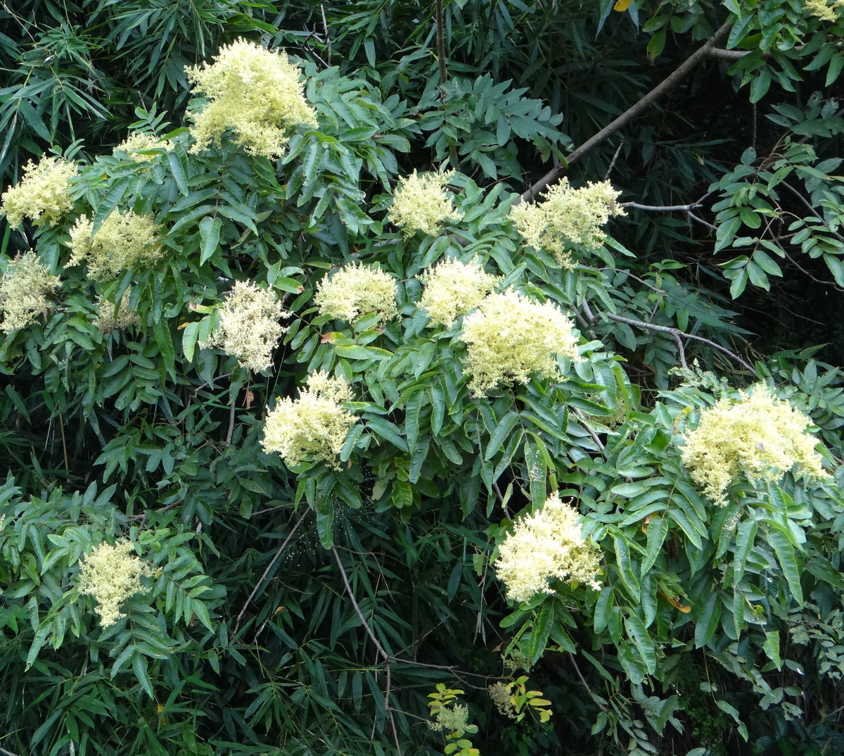綠葉上一叢叢的淡黃色花序,增添山林色彩
