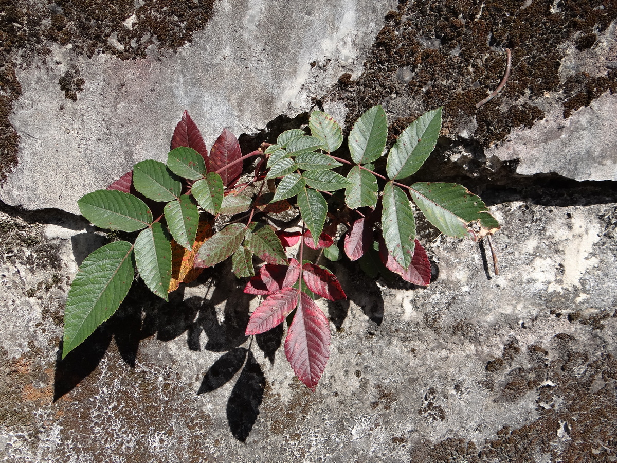 幼株,葉子在掉落前會轉為漂亮的紅色