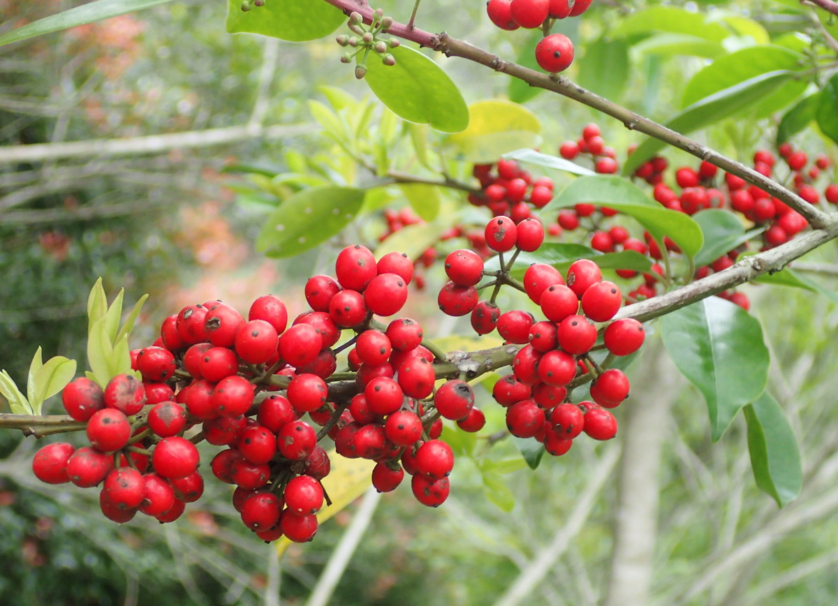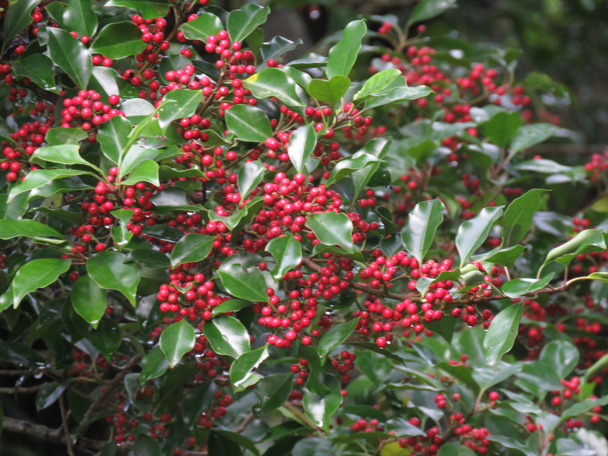 綠葉中露出一串串的紅果,很有過聖誕節的氛圍