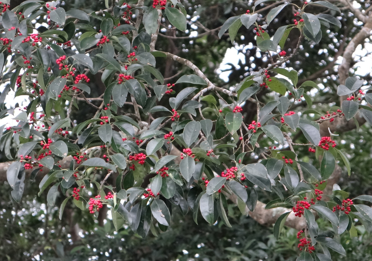 每年3~4月長出新葉、新的花序時,還可見去年的紅果