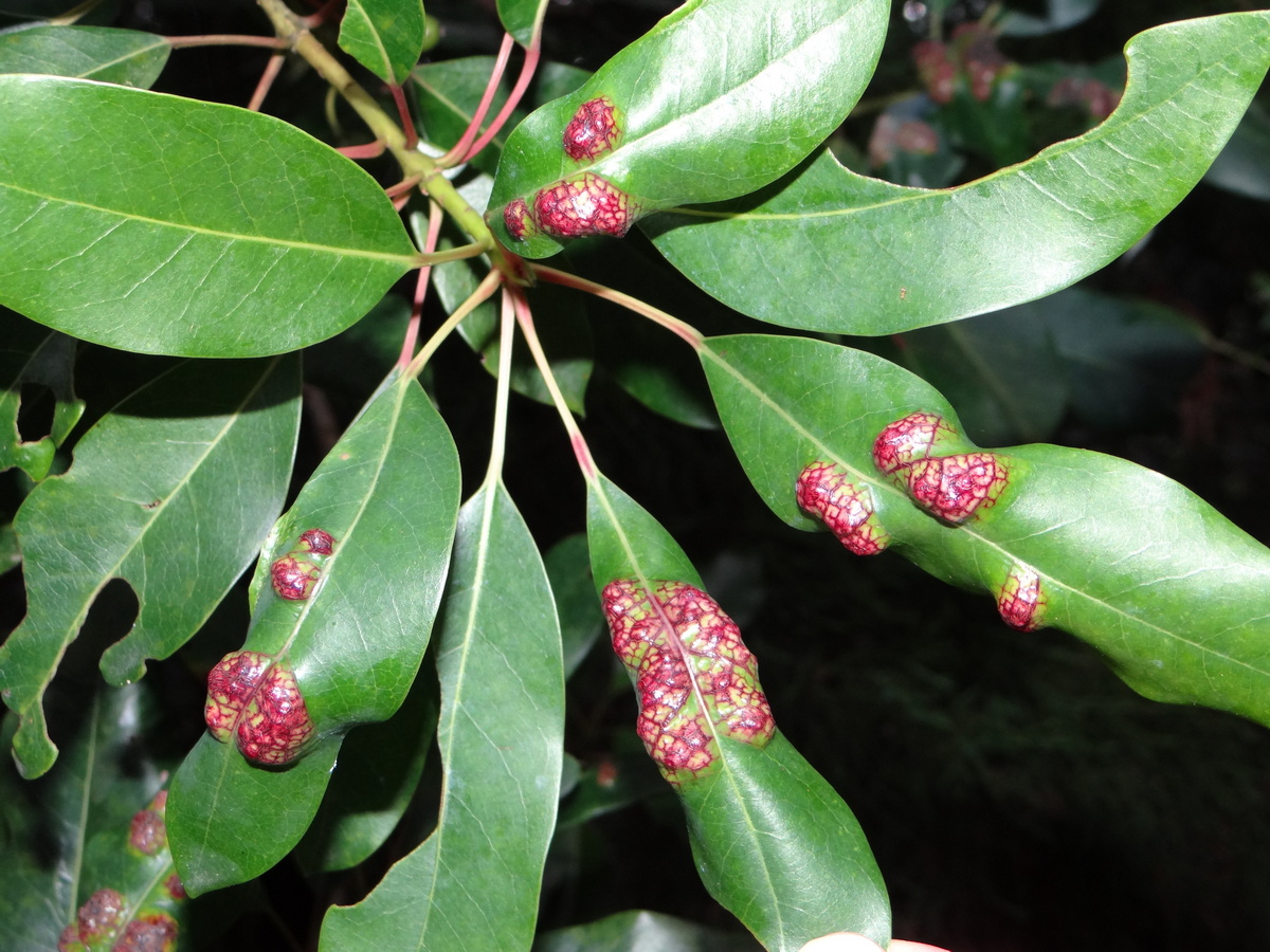葉子表面受蟲癭的侵襲產生豔紅色的隆起