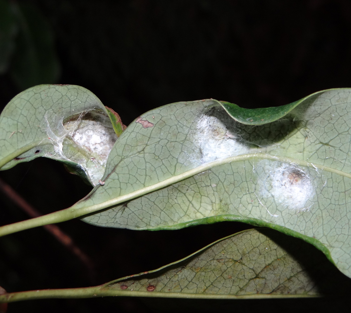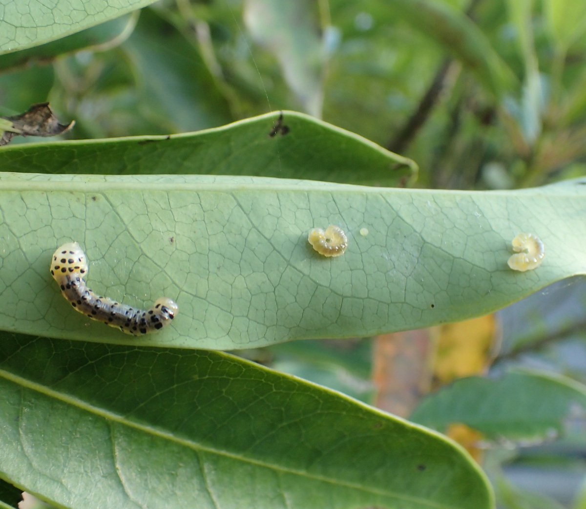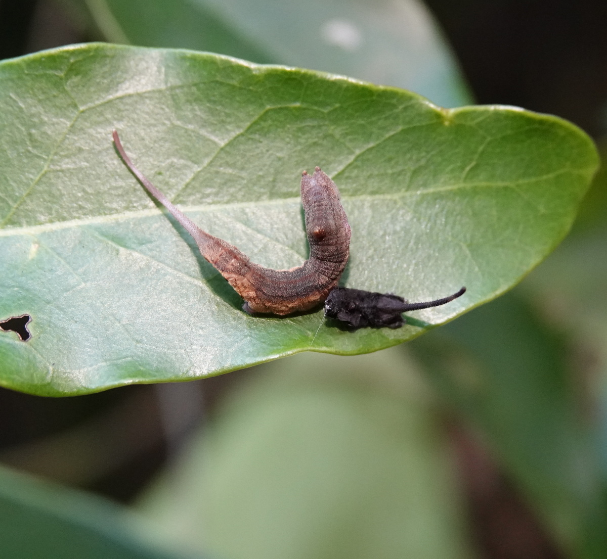 黃紋雙尾蛾幼蟲取食虎皮楠