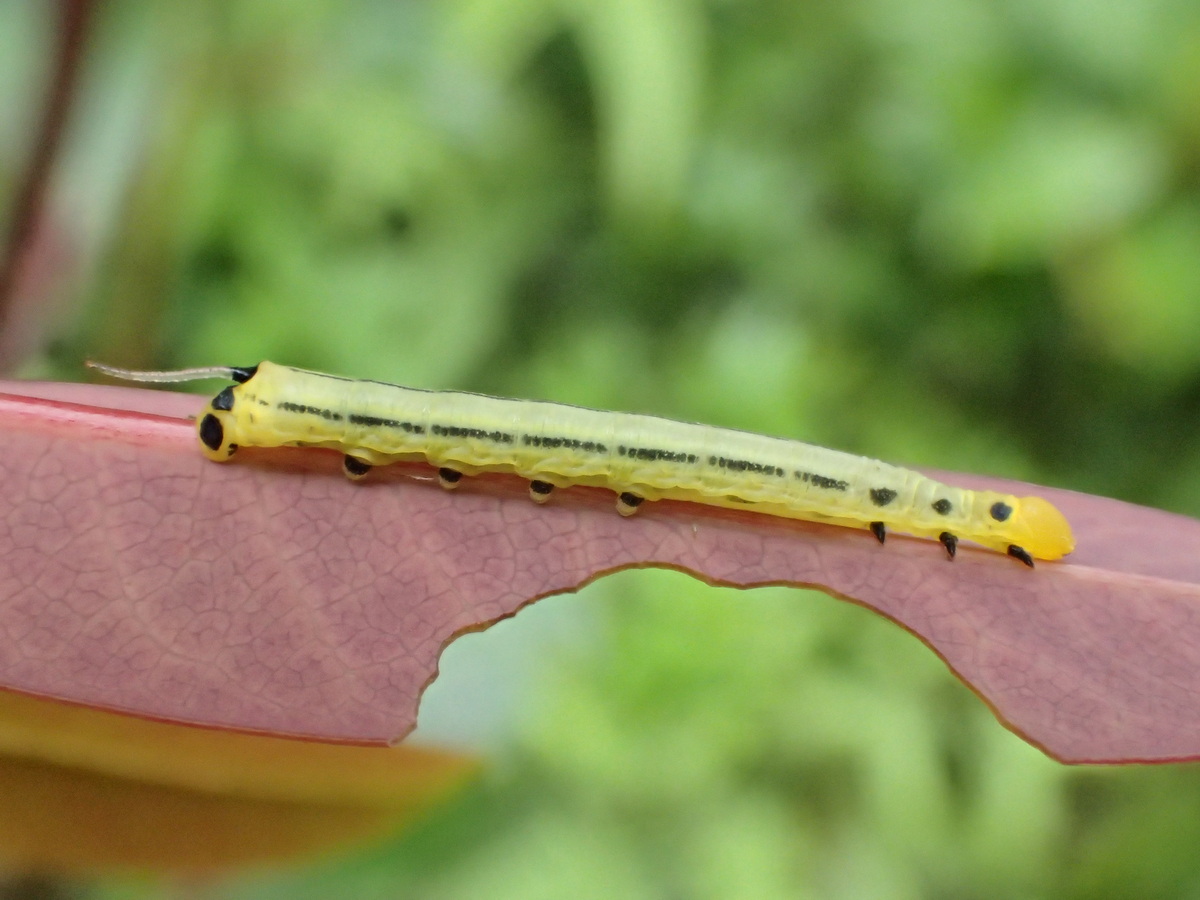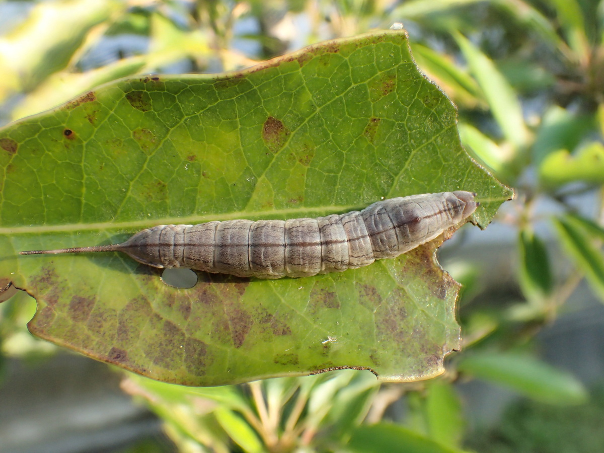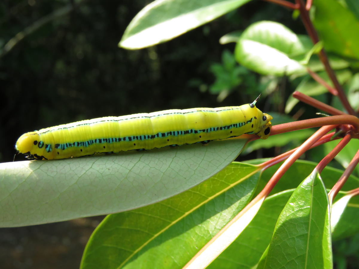 早齡虎皮楠長喙天蛾幼蟲取食虎皮楠嫩葉