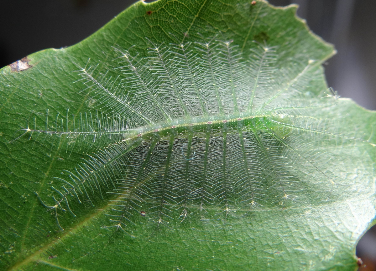 燦蛺蝶幼蟲取食青剛櫟成熟葉 |