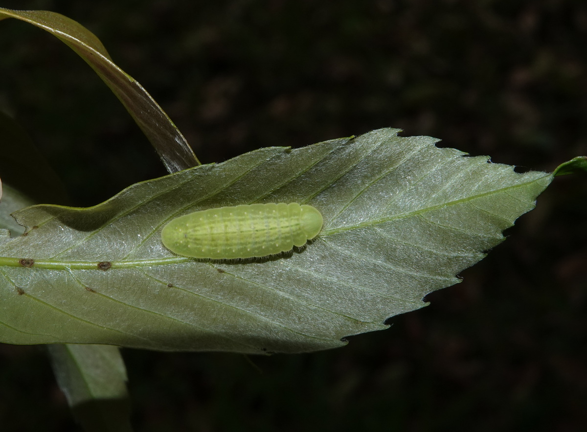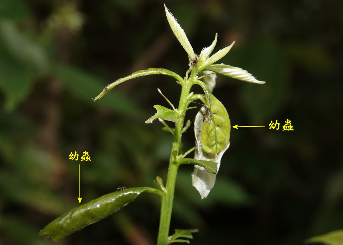 台灣翠蛺蝶幼蟲取食青剛櫟成熟葉 |