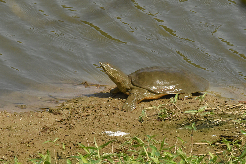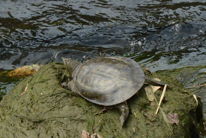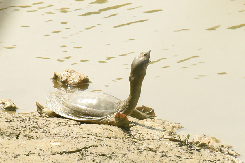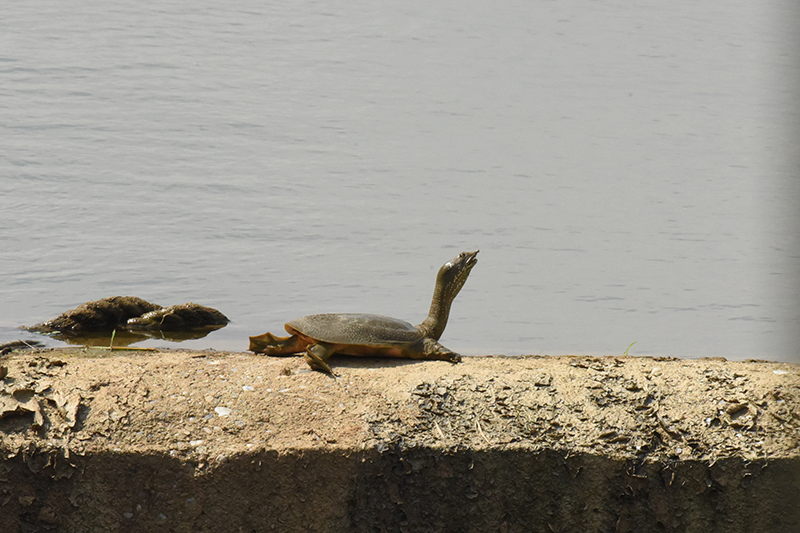 園區溢洪堰壩頂的鱉