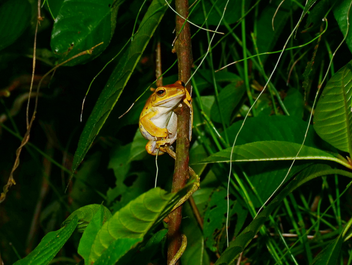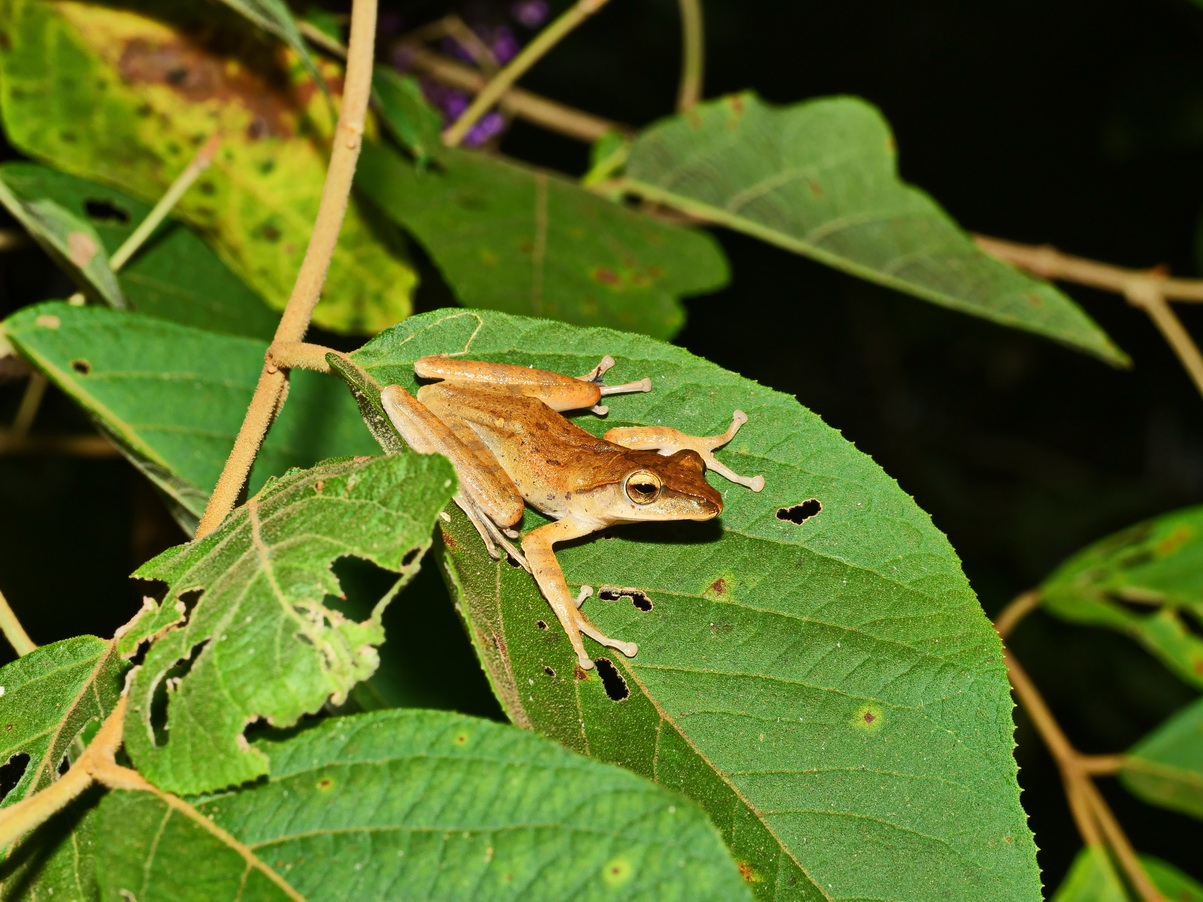 斑腿樹蛙四肢細長,趾端吸盤發達