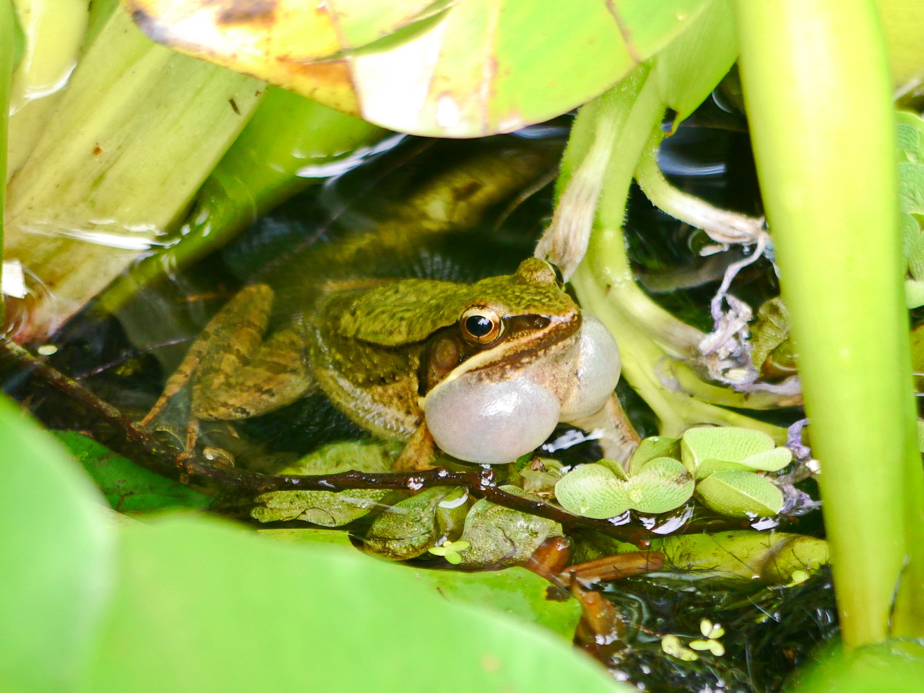 腹斑蛙鼓起雙鳴囊使勁地叫 給!給!給!