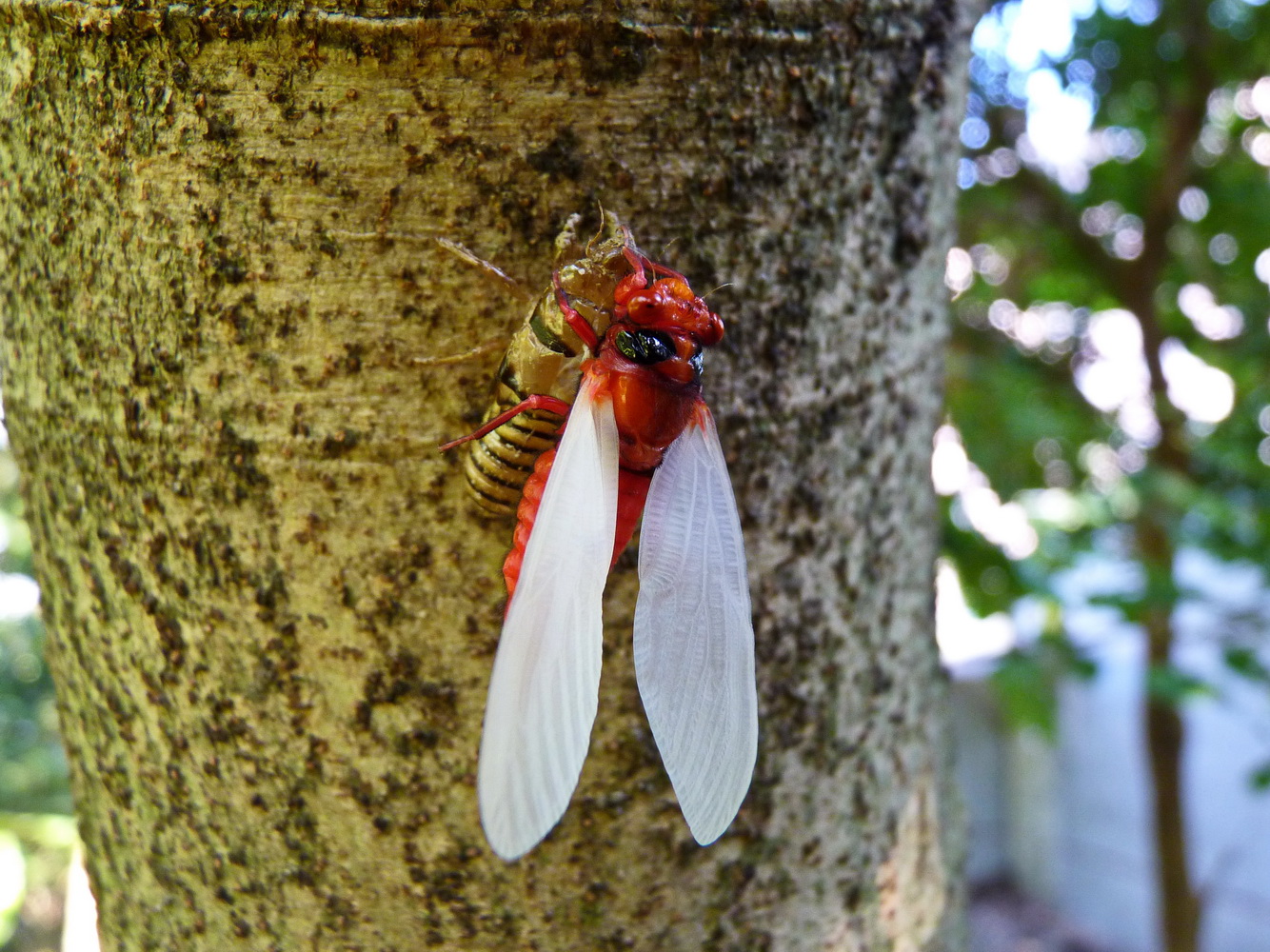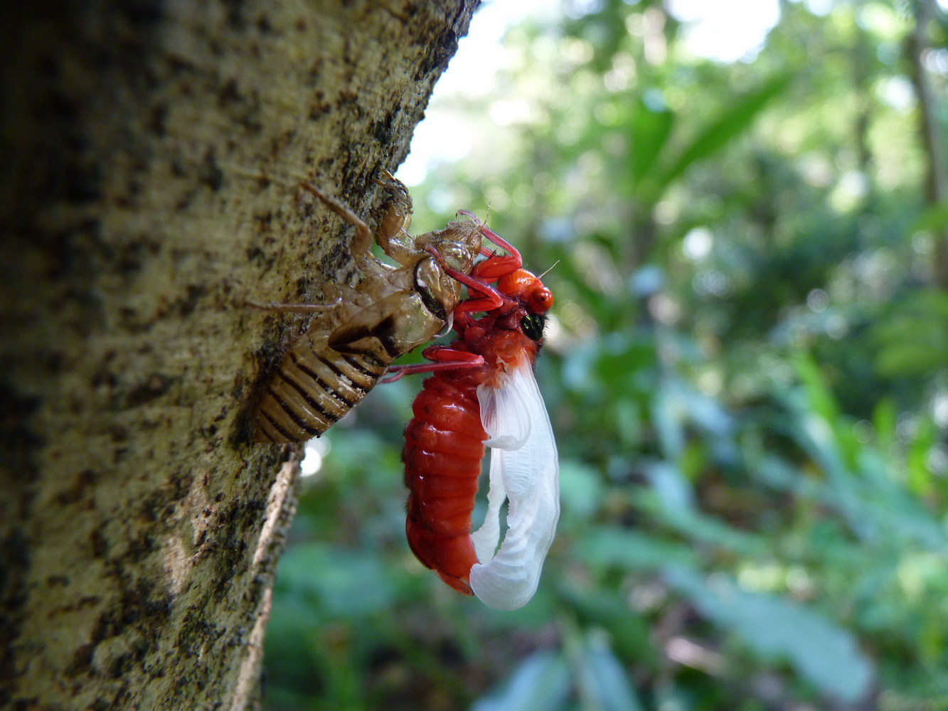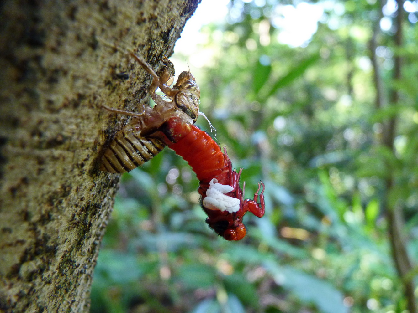 黑翅蟬羽化,翅膀完成伸展初期白色