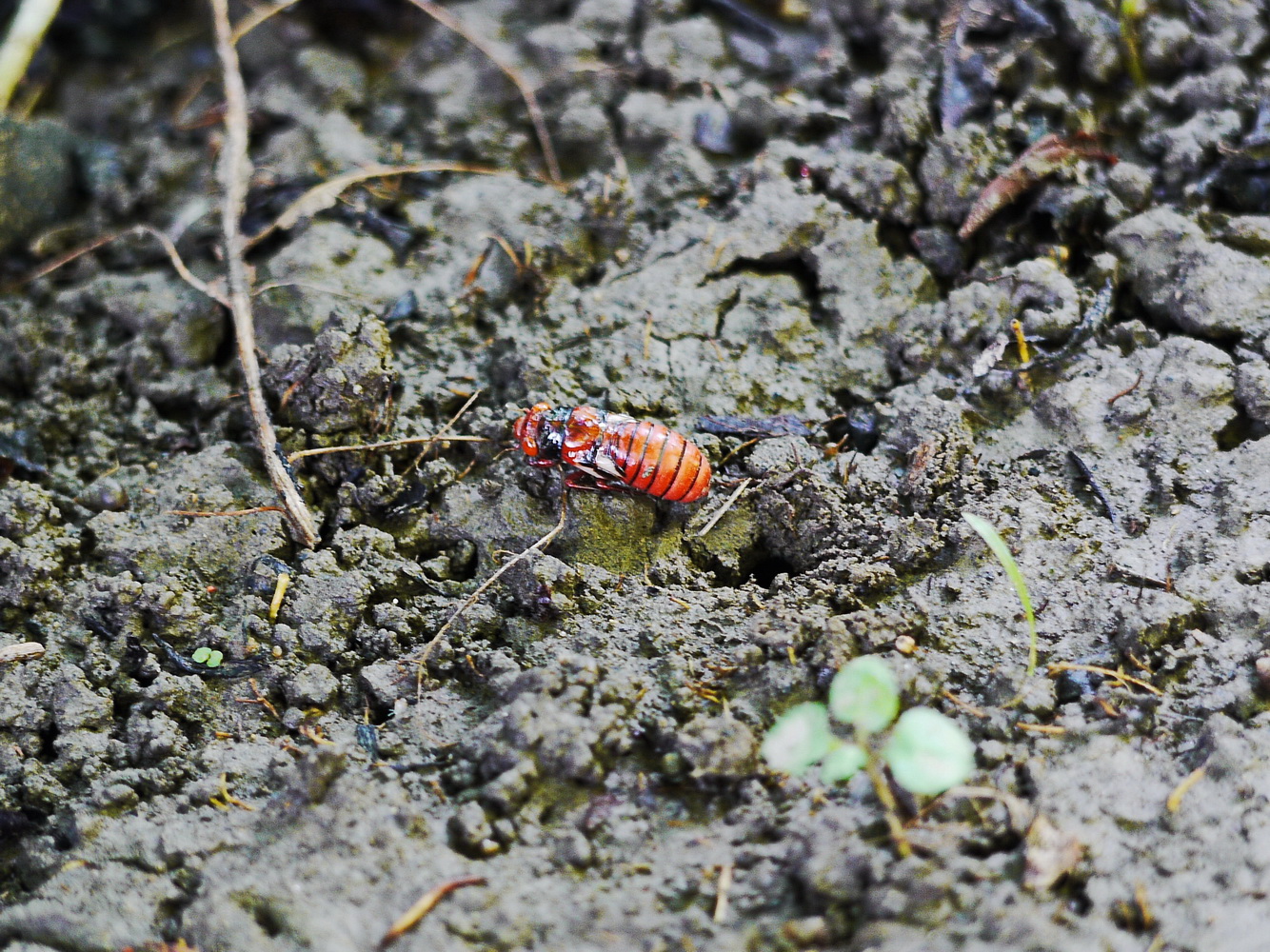 黑翅蟬終齡若蟲由地下爬出