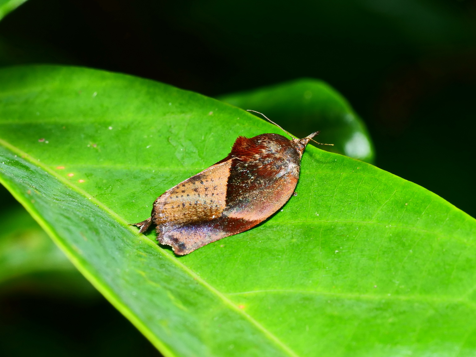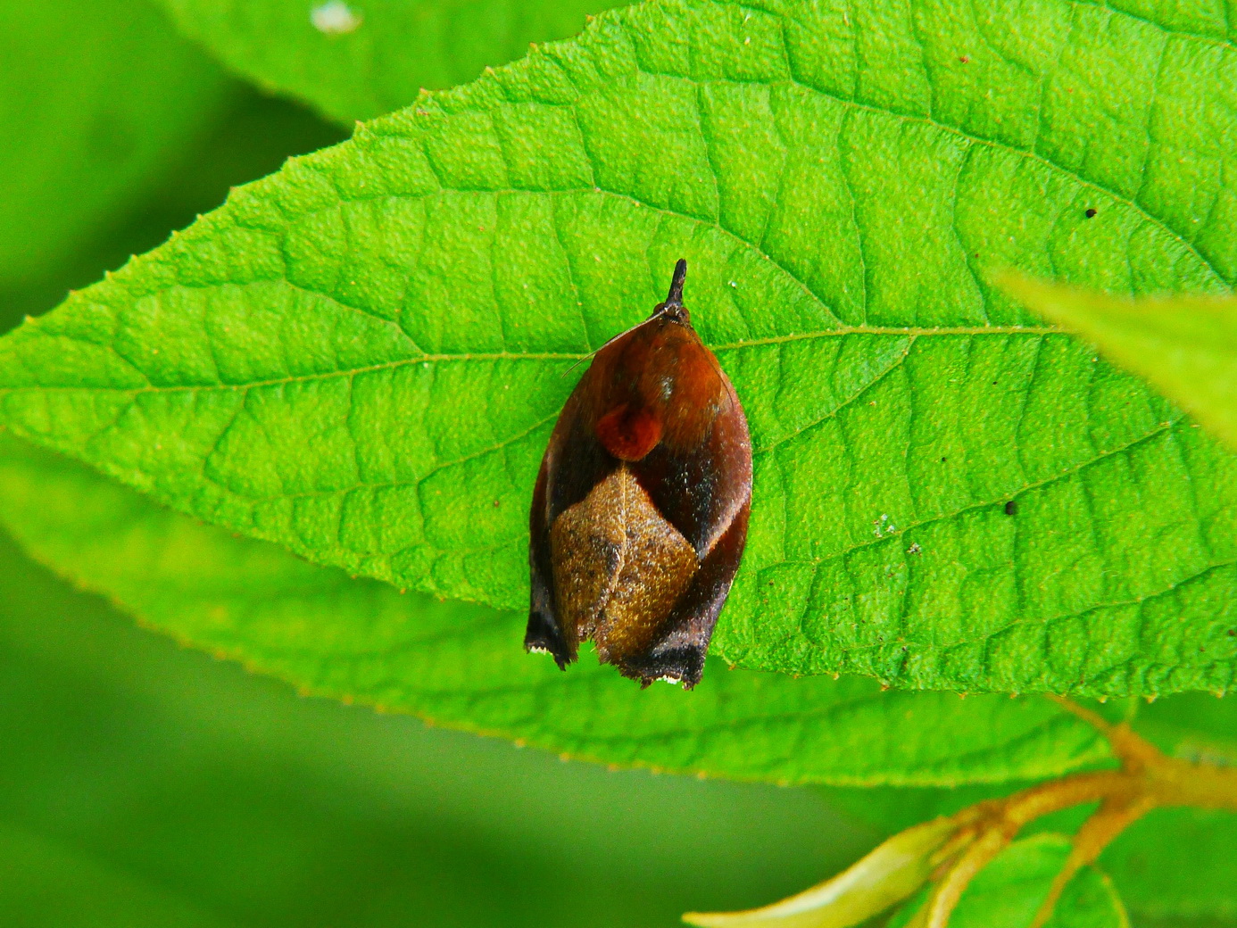 燄駝蛾停棲在杜虹花葉子上