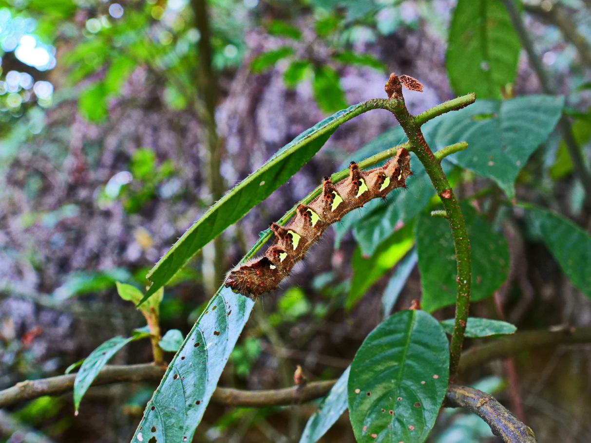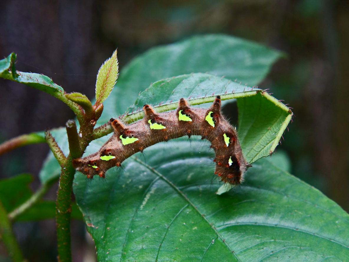 黃豹天蠶蛾幼蟲攝食水冬瓜葉子