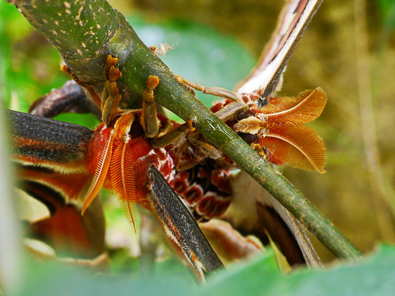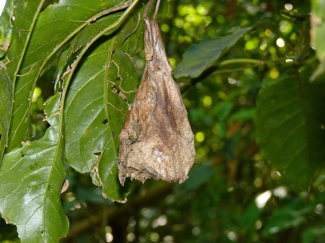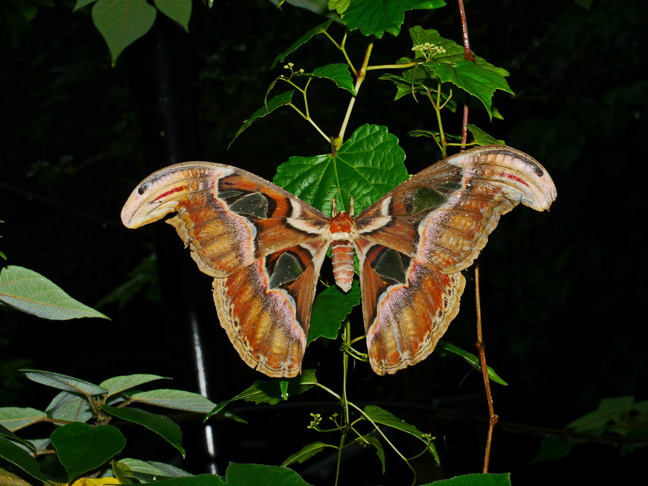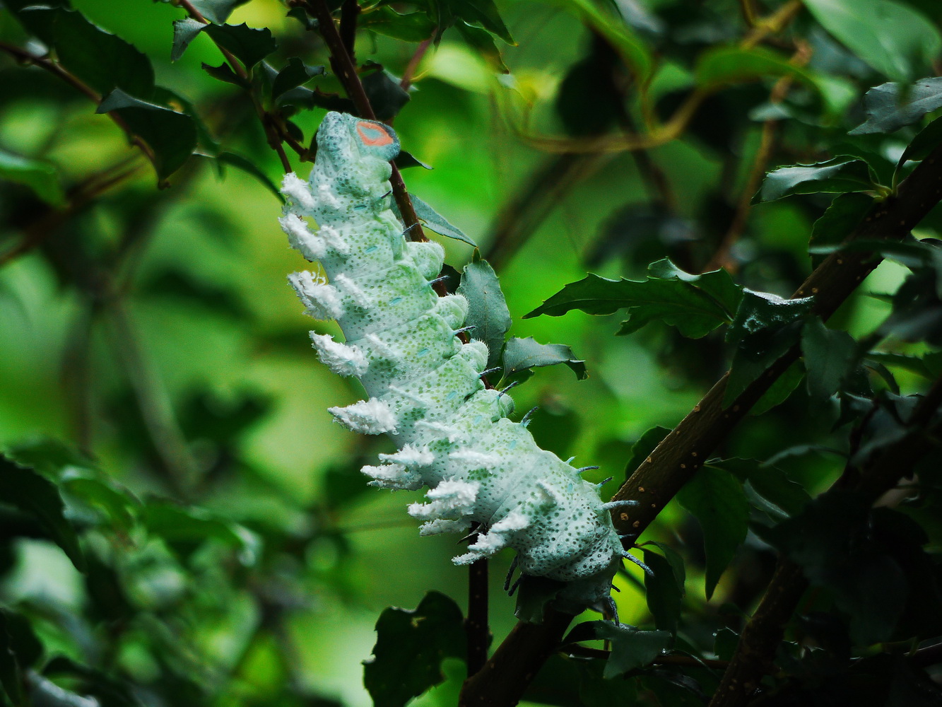 皇蛾幼蟲在江某的葉子上吐絲作繭