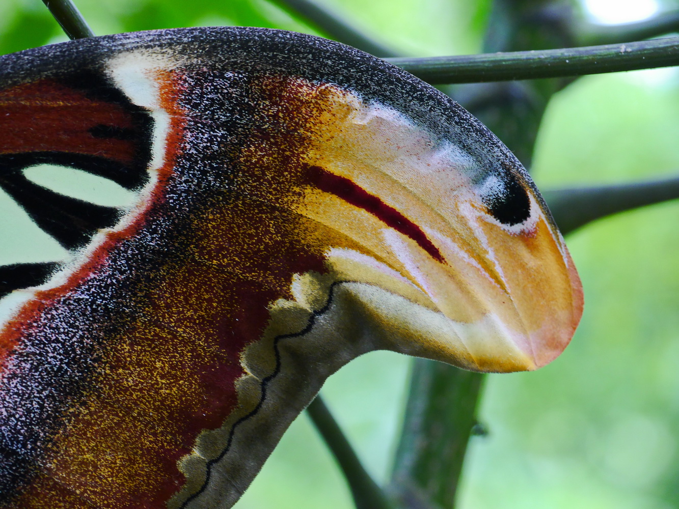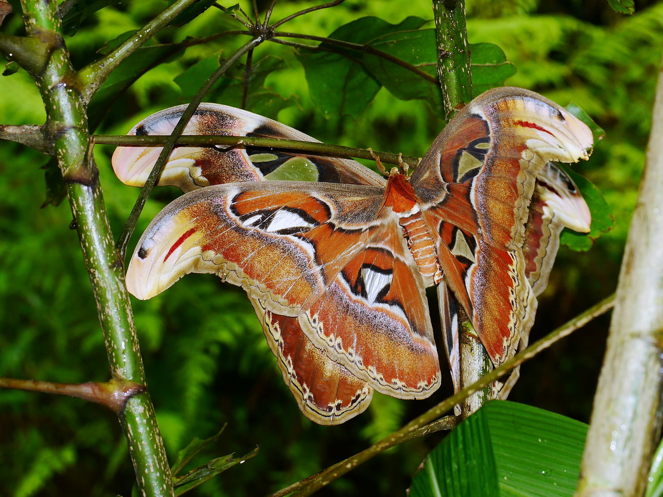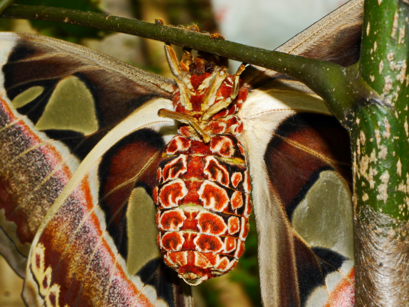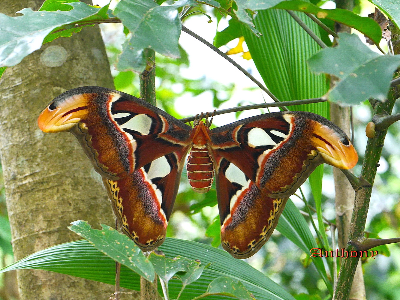 皇蛾幼蟲在江某的葉子上吐絲作繭