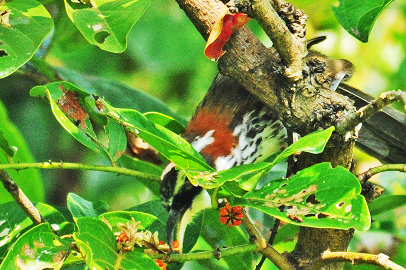 院區生態池小彎嘴吃錫蘭饅頭果的果實