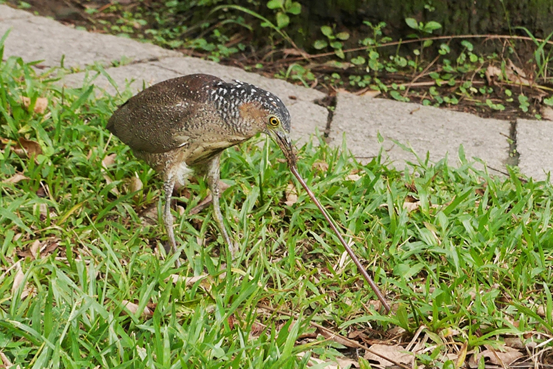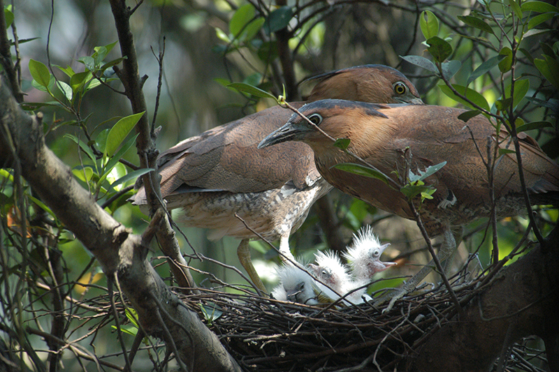 黑冠麻鷺雛鳥剛孵出時的羽毛白色