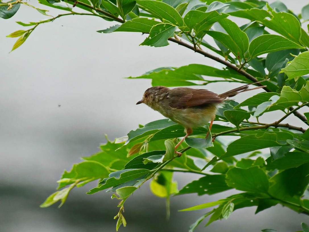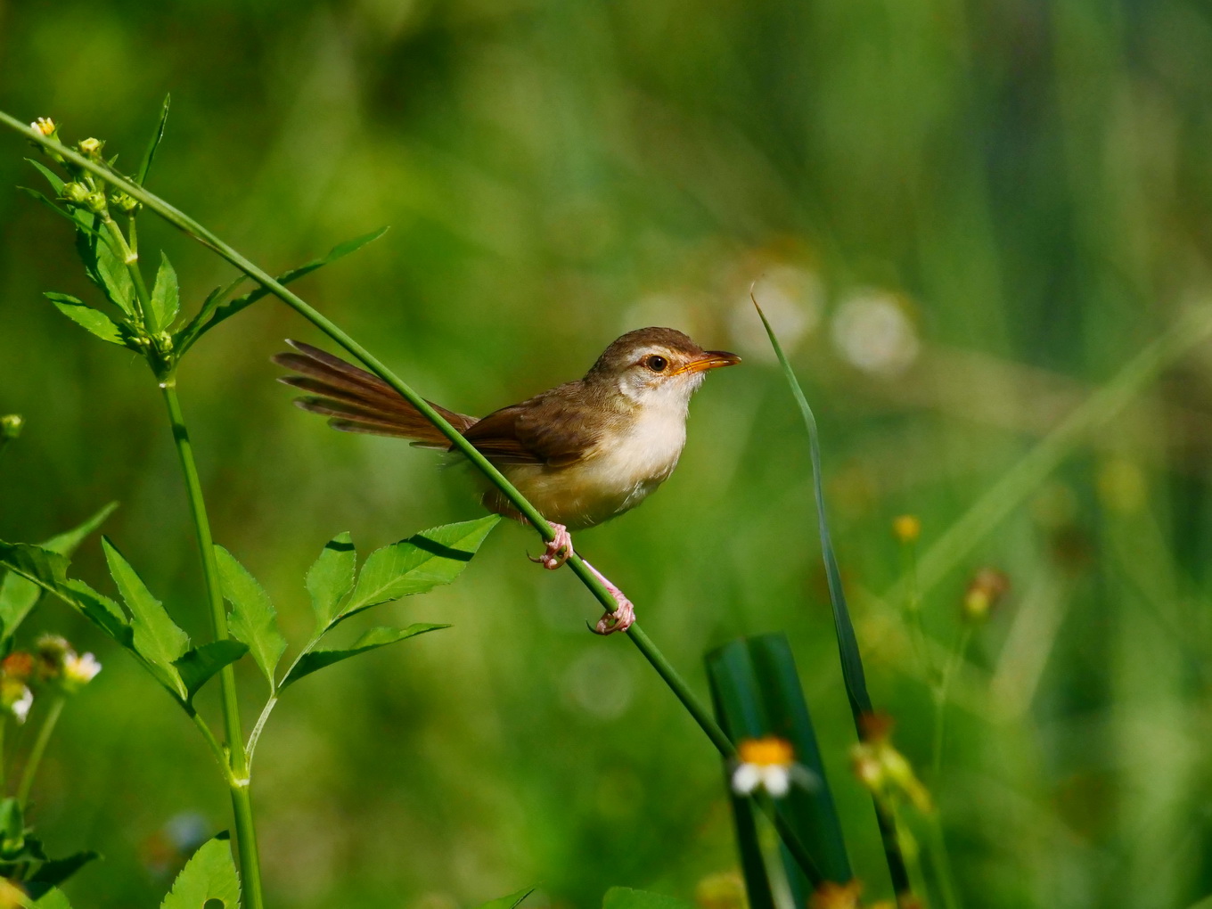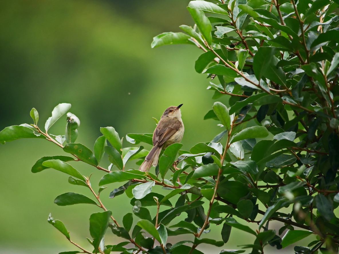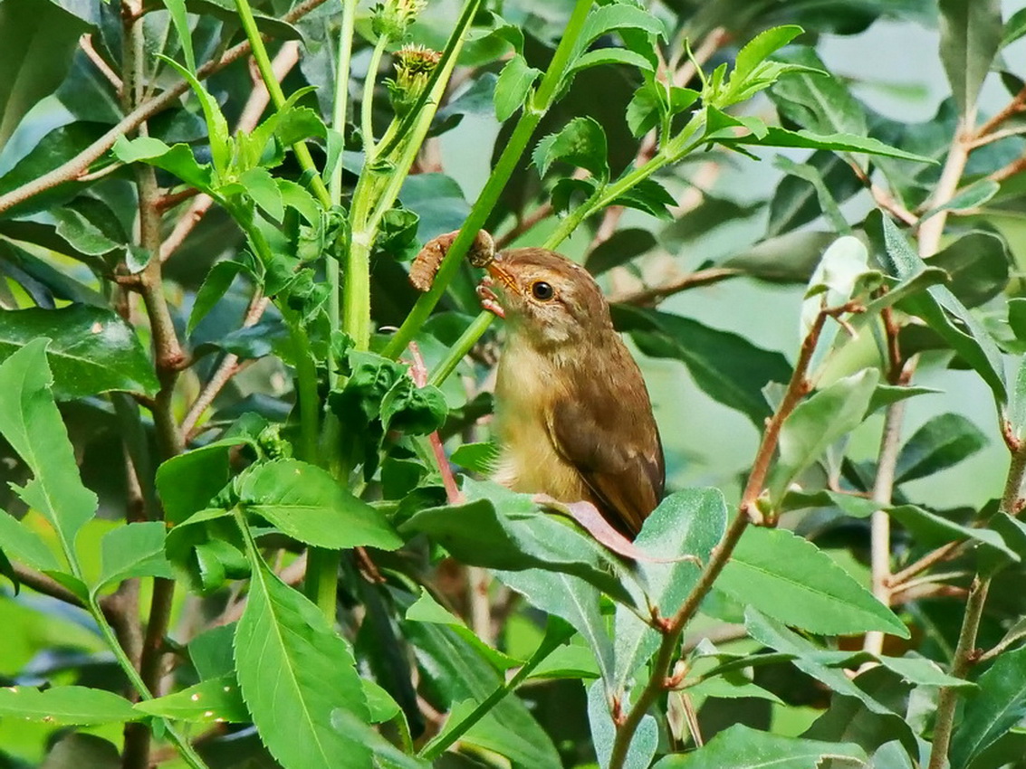 褐頭鷦鶯在椬梧上捕獵小蟲