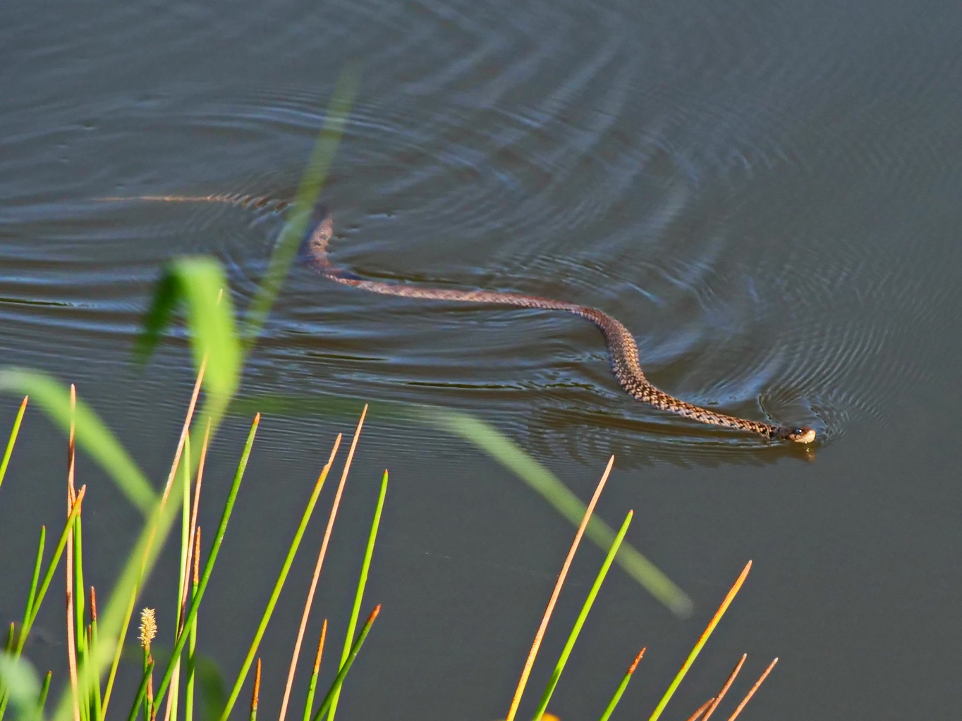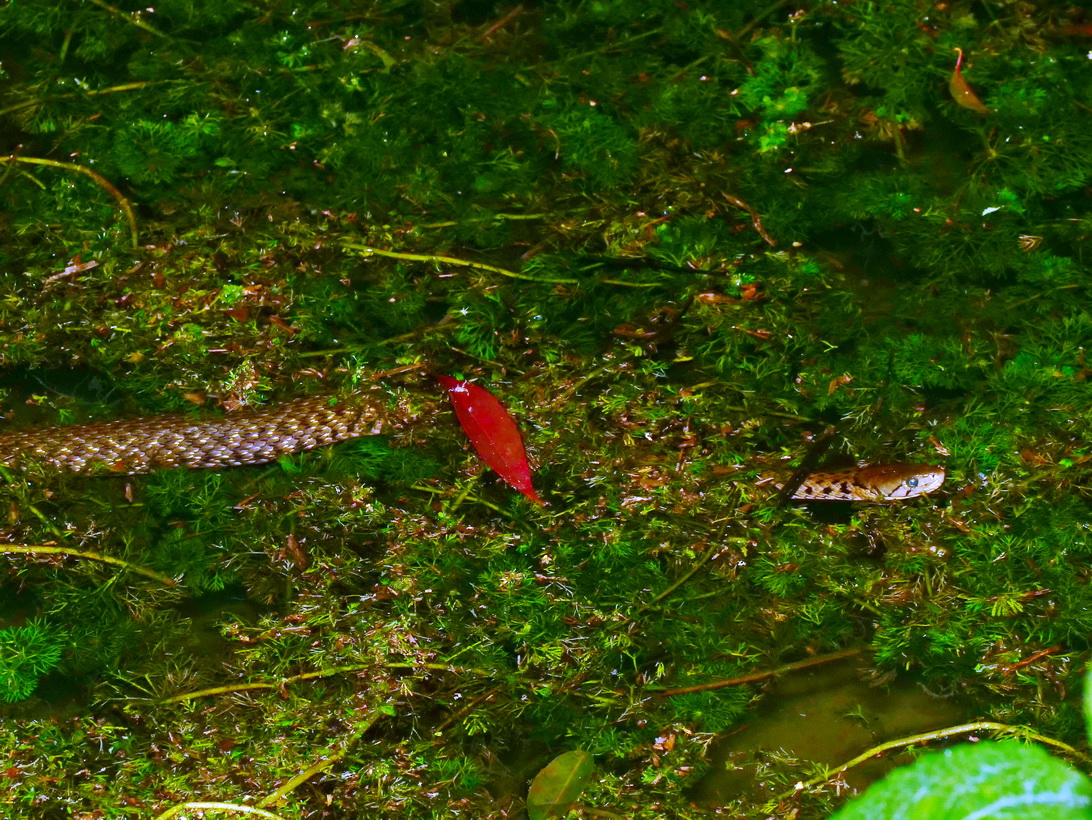 生態池內的草花蛇